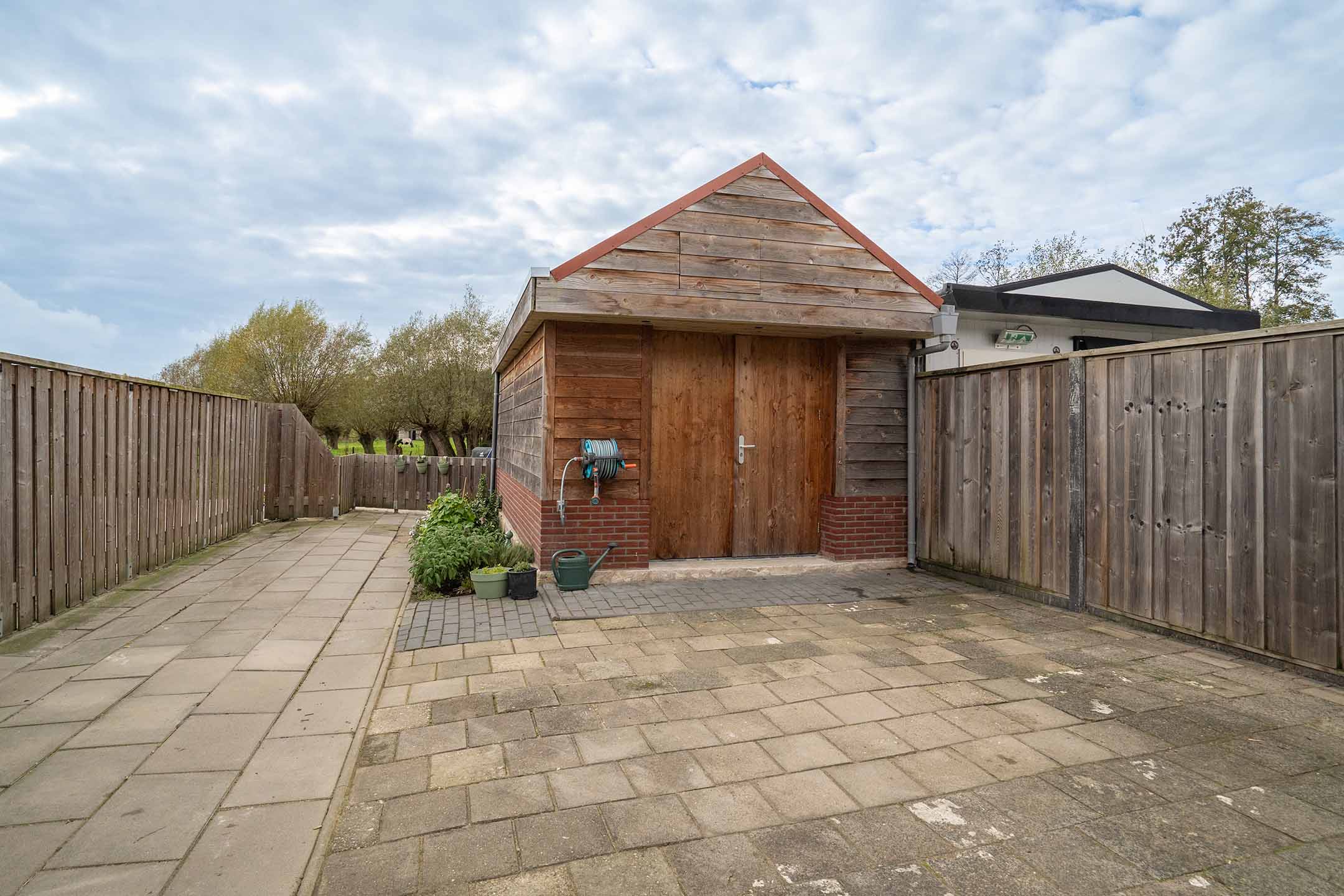 Buitenleven: De achtertuin is verzorgd en onderhoudsvriendelijk aangelegd. Achterin staat een grote vrijstaande berging, ideaal voor fietsen, hobby’s of extra opslagruimte. Daarnaast is er volop ruimte om buiten te zitten en te genieten van de rust en privacy. Aan de zijkant van de woning is bovendien een eigen achterom aanwezig.