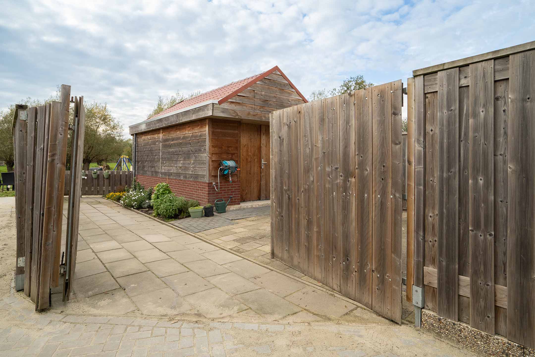 - Grote vrijstaande schuur in de tuin;