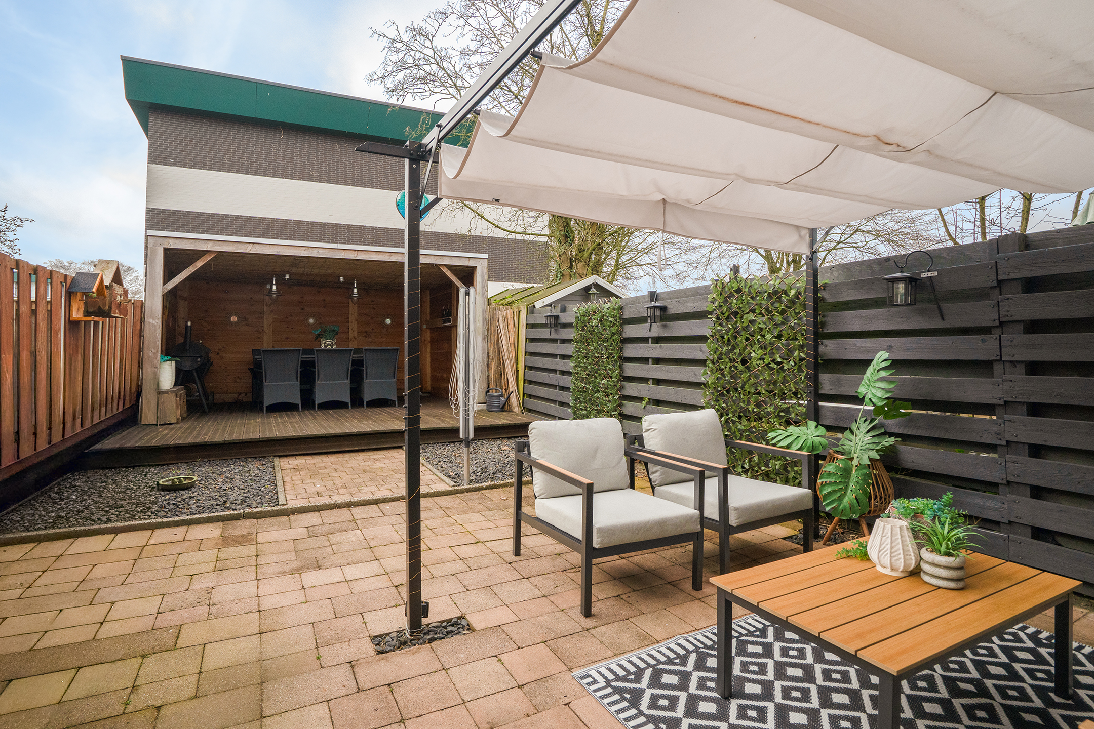 Tuin: Deze is gesitueerd op Zuidoost en heeft een gezellige overkapping achterin.