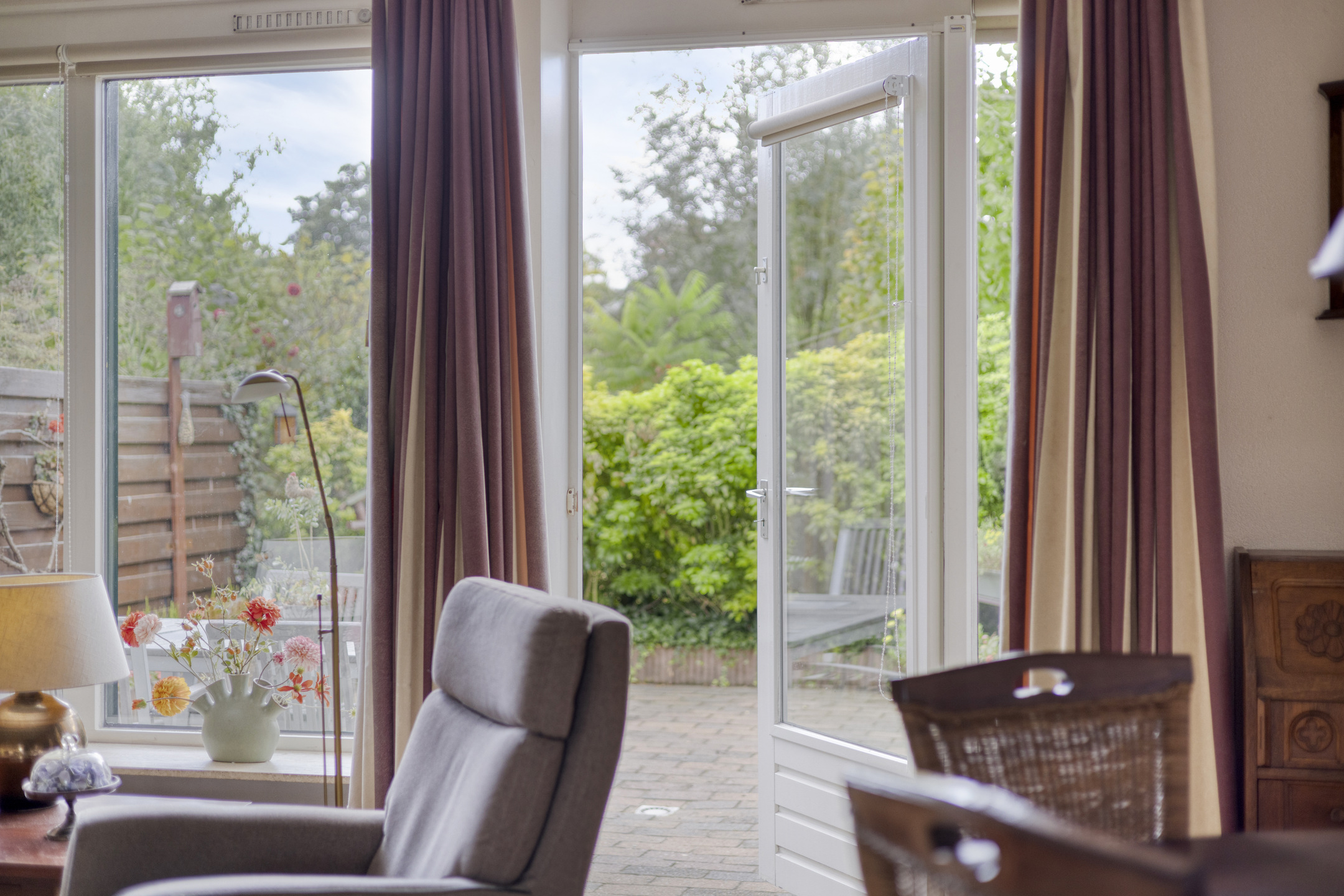De woonkamer profiteert van een brede raampartij aan de tuinzijde, waardoor een prachtige lichtinval ontstaat en de verbinding met de achtertuin optimaal is. Ook is er een inbouwkast aanwezig, ideaal voor extra bergruimte.