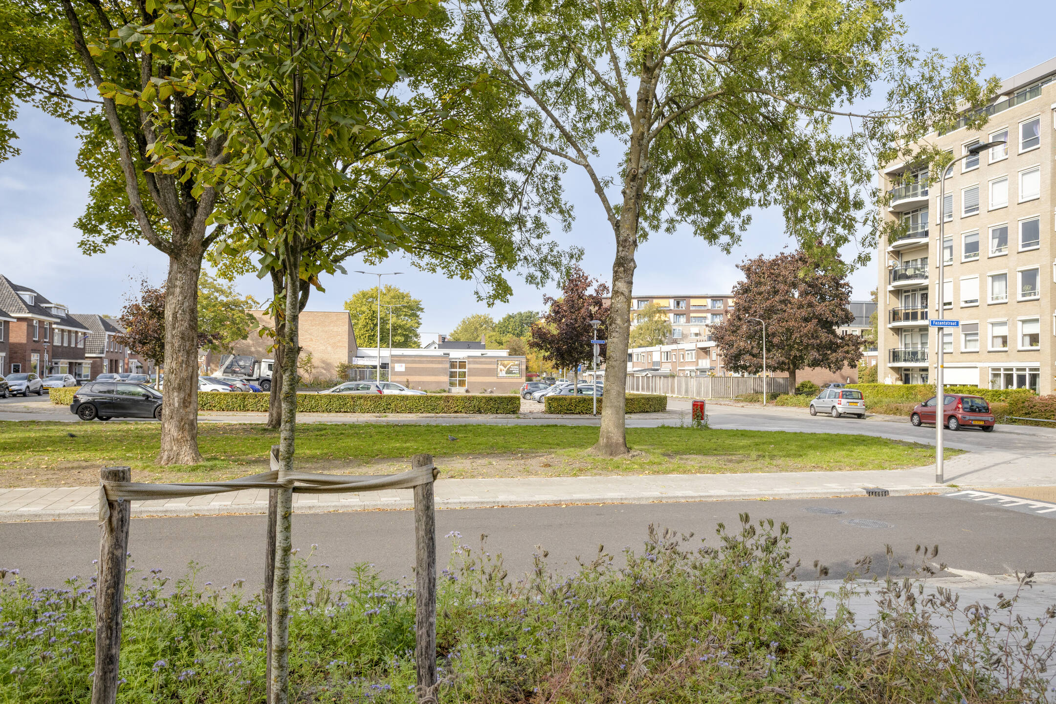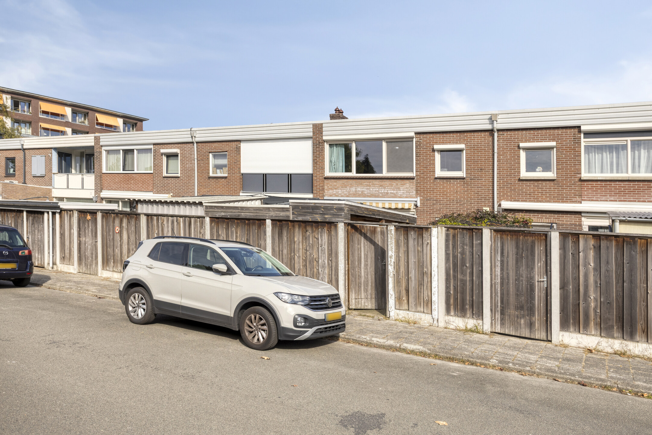 Tuinen: De achtertuin bereiken we via de achterdeur in de keuken, maar zodra het maar even mooi weer is, zorgen de tuindeuren vanuit de woonkamer natuurlijk voor de directe open verbinding. De ruime overkapping is snel bereikt en daar achter ligt de fietsenschuur. De poort verbindt de tuin met de achterliggende Spechtstraat, waar een ieder zijn of haar auto parkeert. De voortuin ligt aan het plantsoen. Er is vanaf straat een inrit, waardoor het mogelijk is om in de voortuin een parkeerplaats te realiseren, zoals verschillende buren al hebben gedaan.