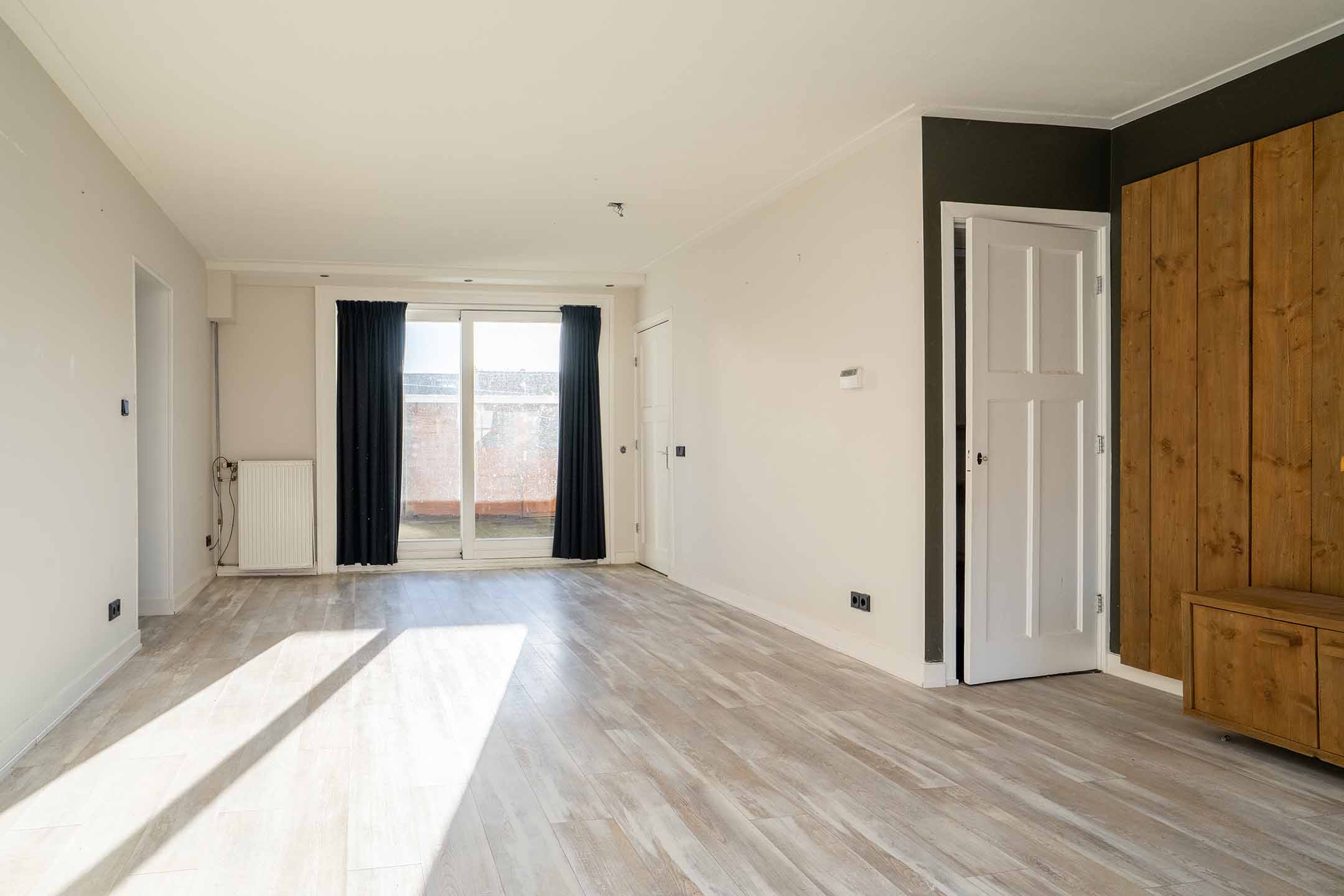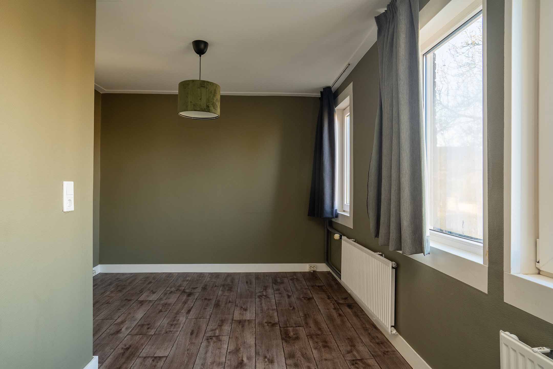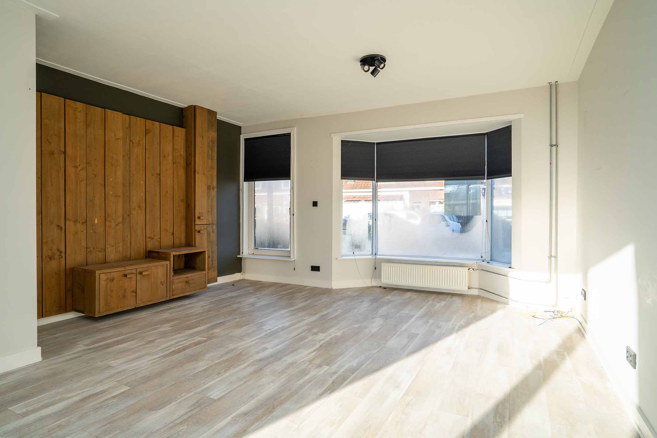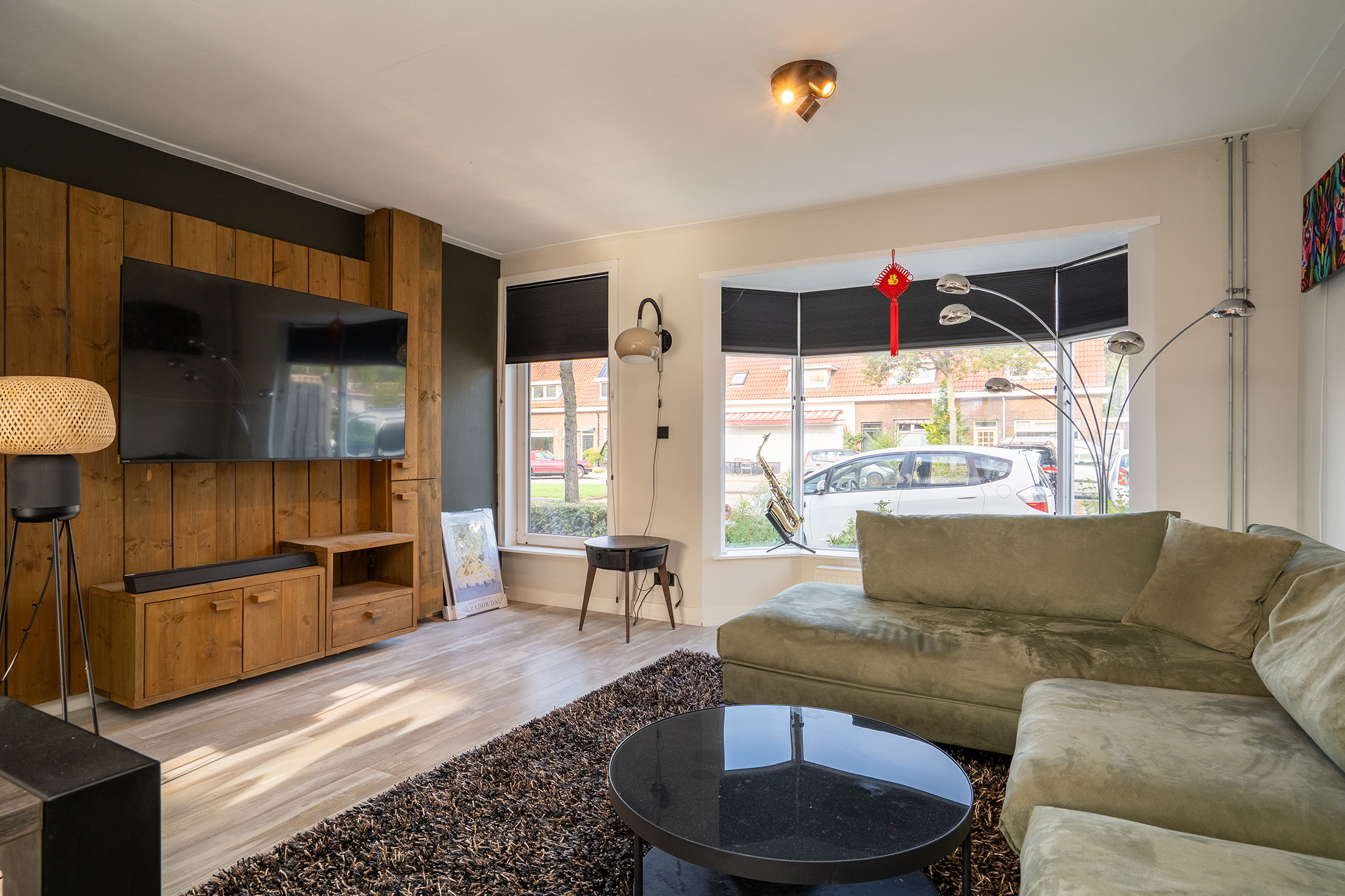Vanuit de keuken is de woonkamer bereikbaar. Deze is ruim opgezet en geniet van veel lichtinval dankzij de grote ramen aan de voorzijde. De ruimte is sfeervol en biedt voldoende plaats voor zowel een zit- als eethoek.