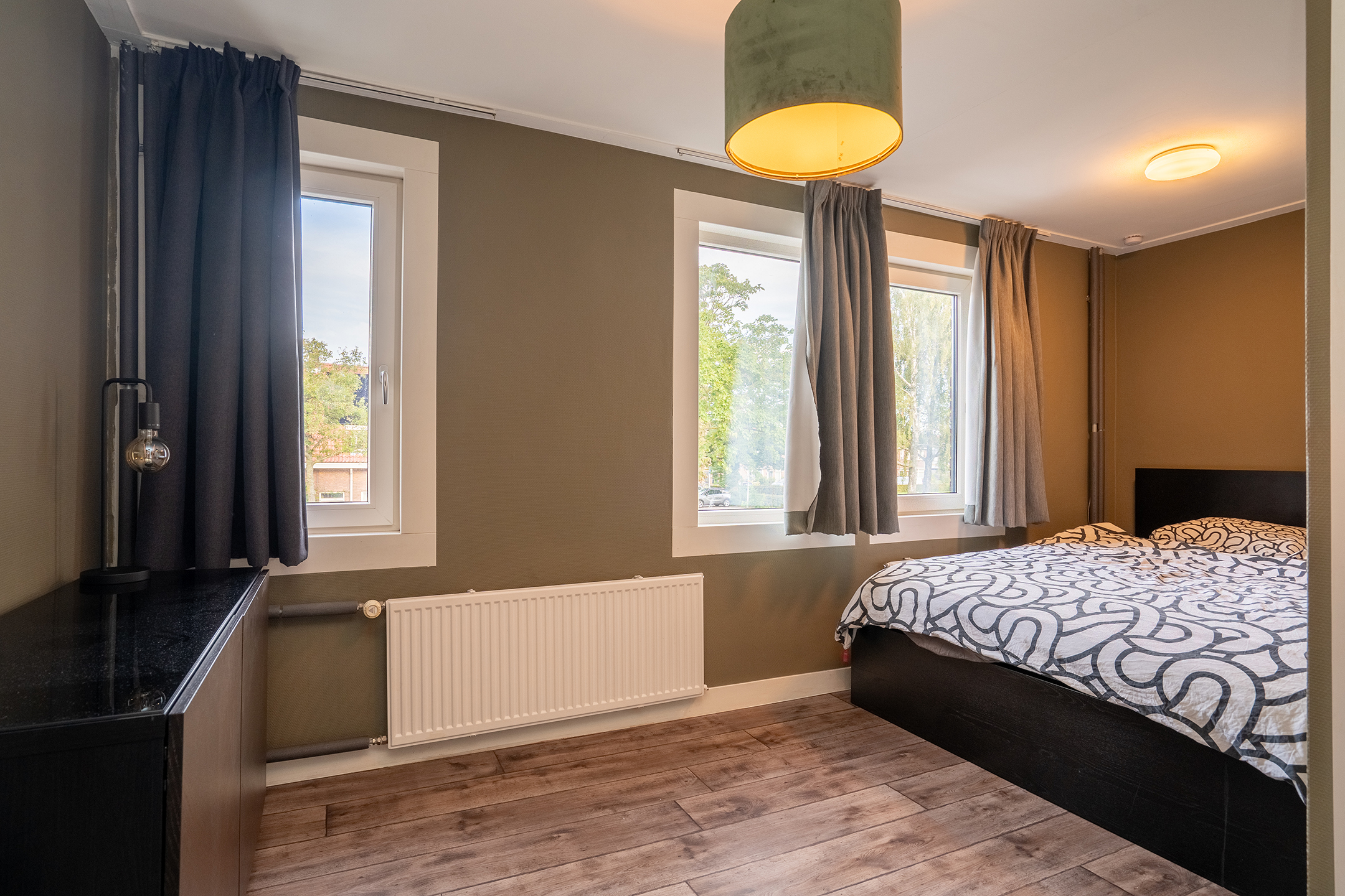 1e verdieping: Vanaf de overloop is er toegang tot twee lichte en ruime slaapkamers. Dankzij de grote ramen valt er veel daglicht binnen. De kamers zijn praktisch in te delen en bieden voldoende ruimte voor een tweepersoonsbed en kastruimte, maar zijn ook zeer geschikt als kinderkamer of werkkamer.
