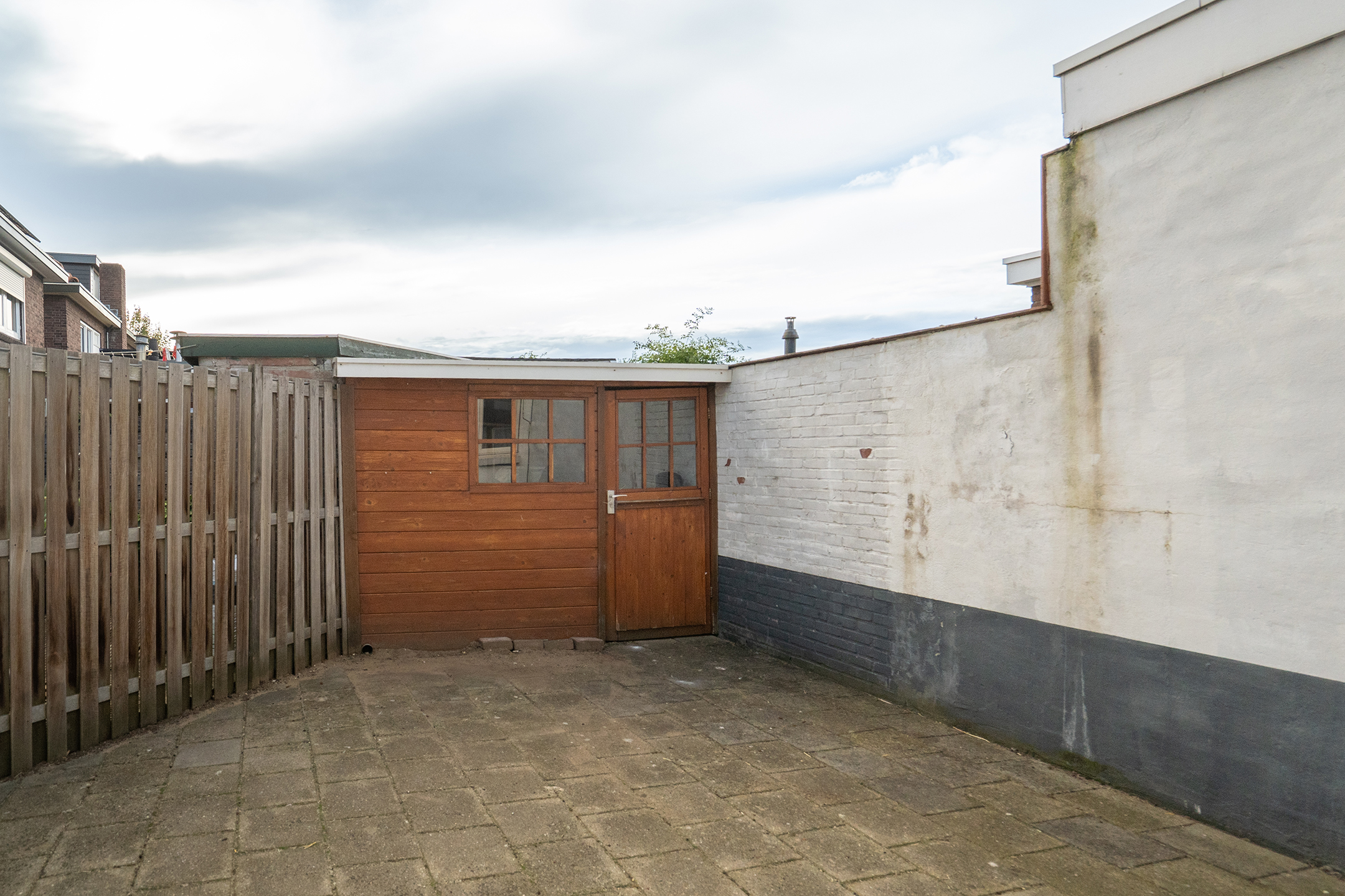 Aan de achterzijde van de woning bevindt zich nog een kleine patio. Hier is tevens een praktische berging aanwezig voor tuingereedschap.