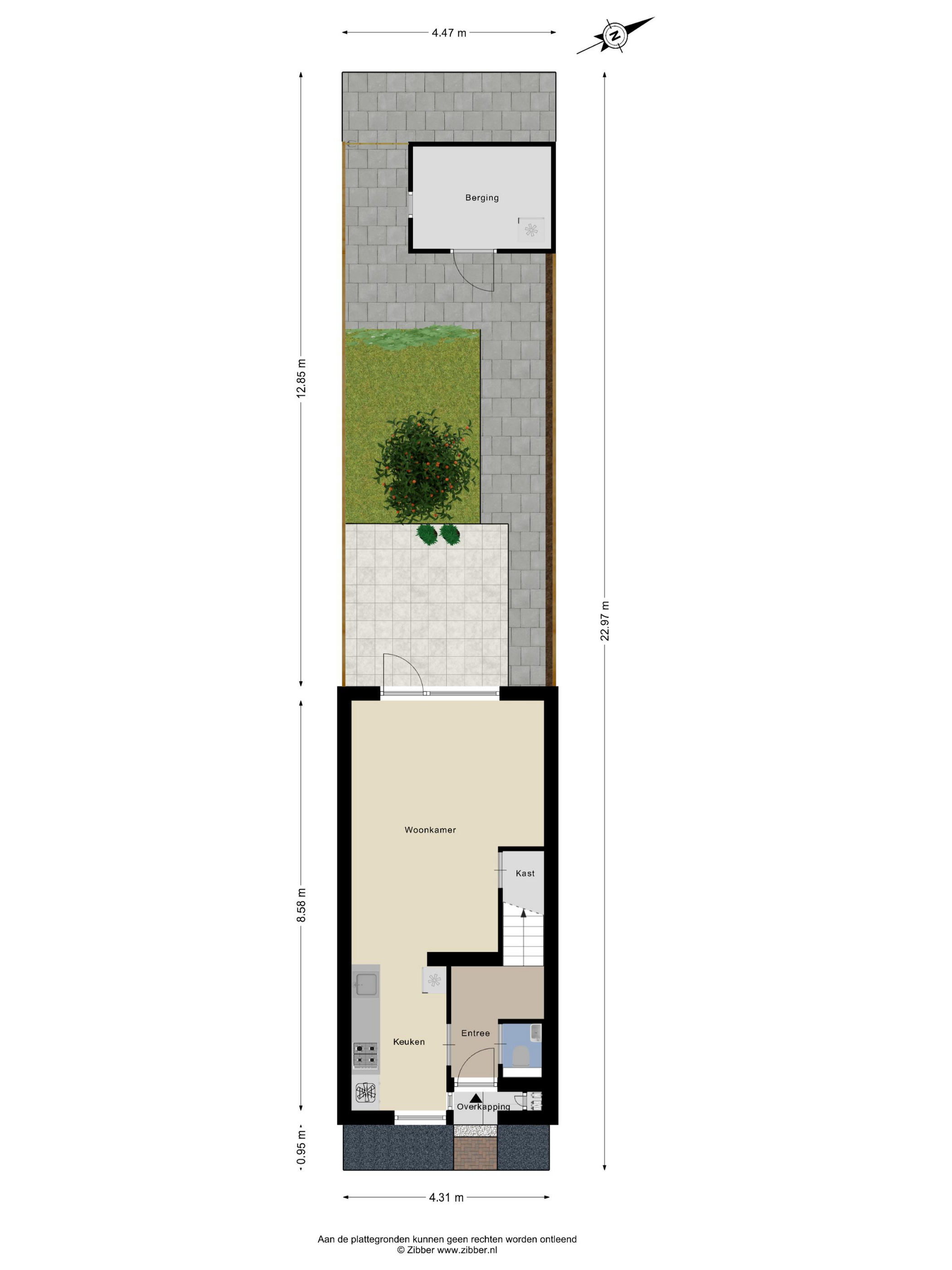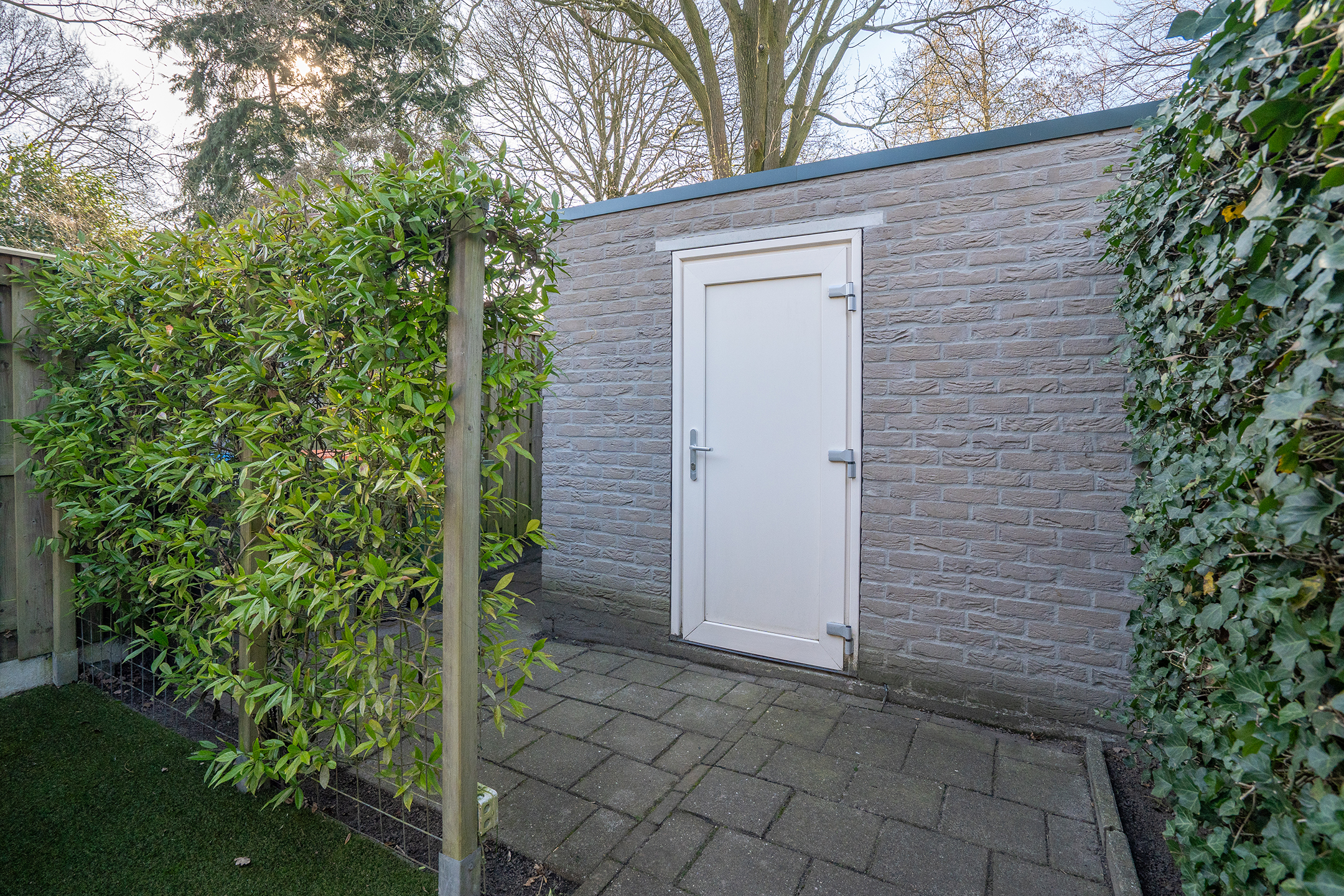 Achterin de tuin bevindt zich een praktische berging, ideaal voor het stallen van fietsen en het opbergen van tuinspullen. Dankzij de beschutte ligging en de groene erfafscheidingen biedt de tuin veel privacy en is het een fijne plek om te ontspannen.