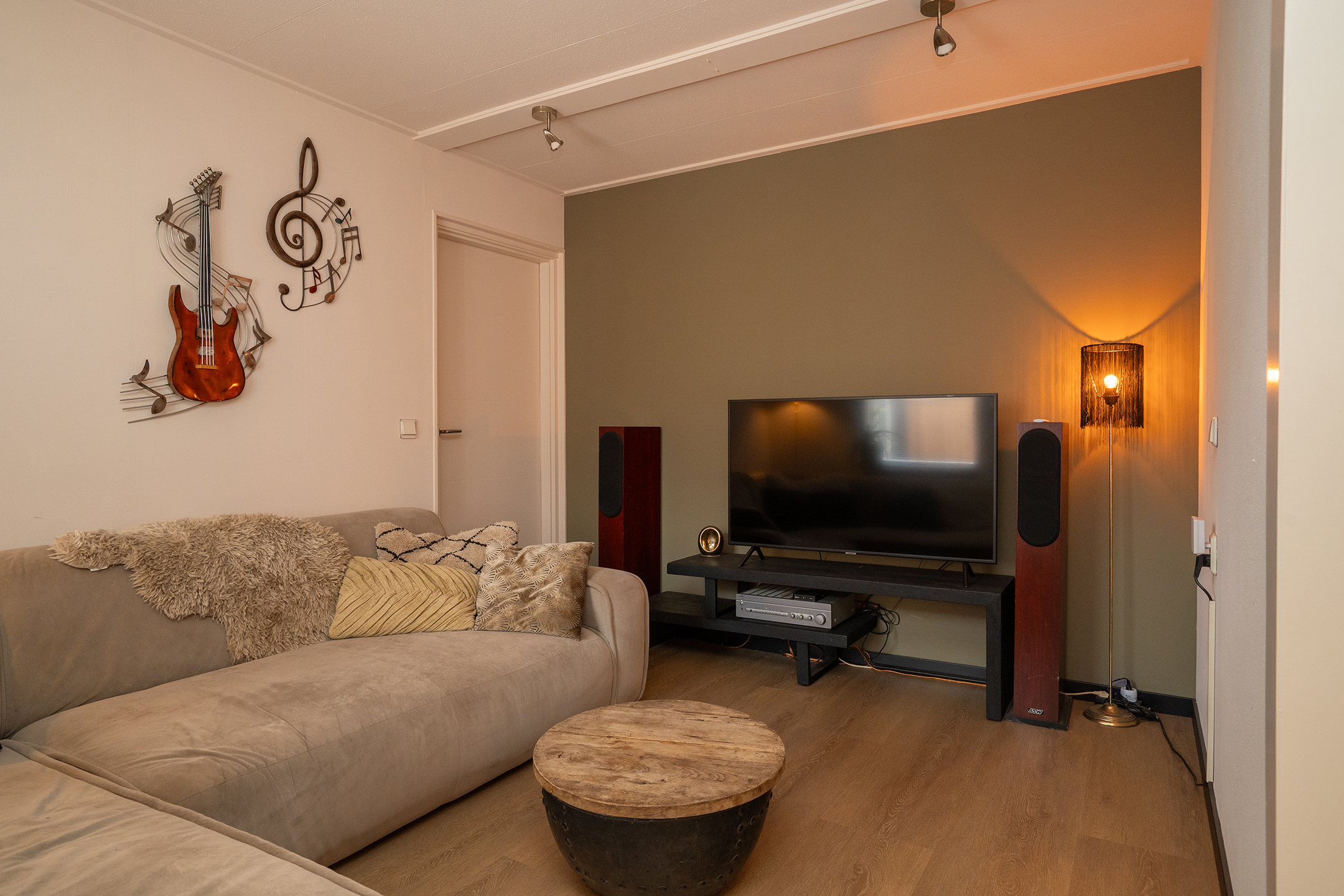 Achterin bevindt zich een gezellig zitgedeelte, ideaal als tv-hoek of plek om te ontspannen.
