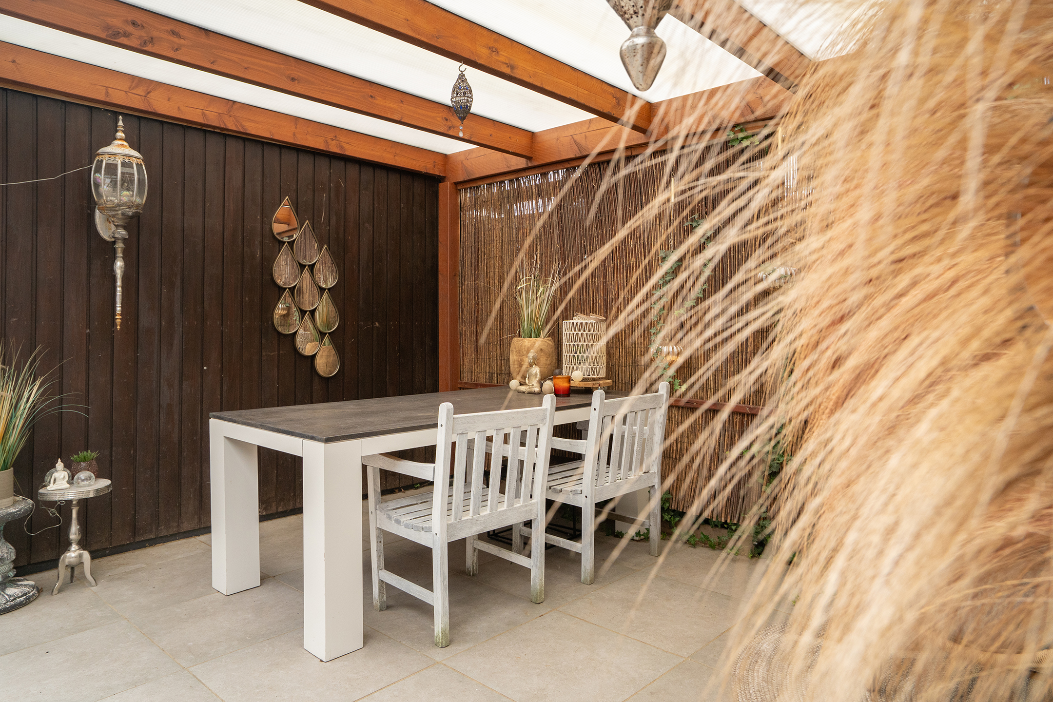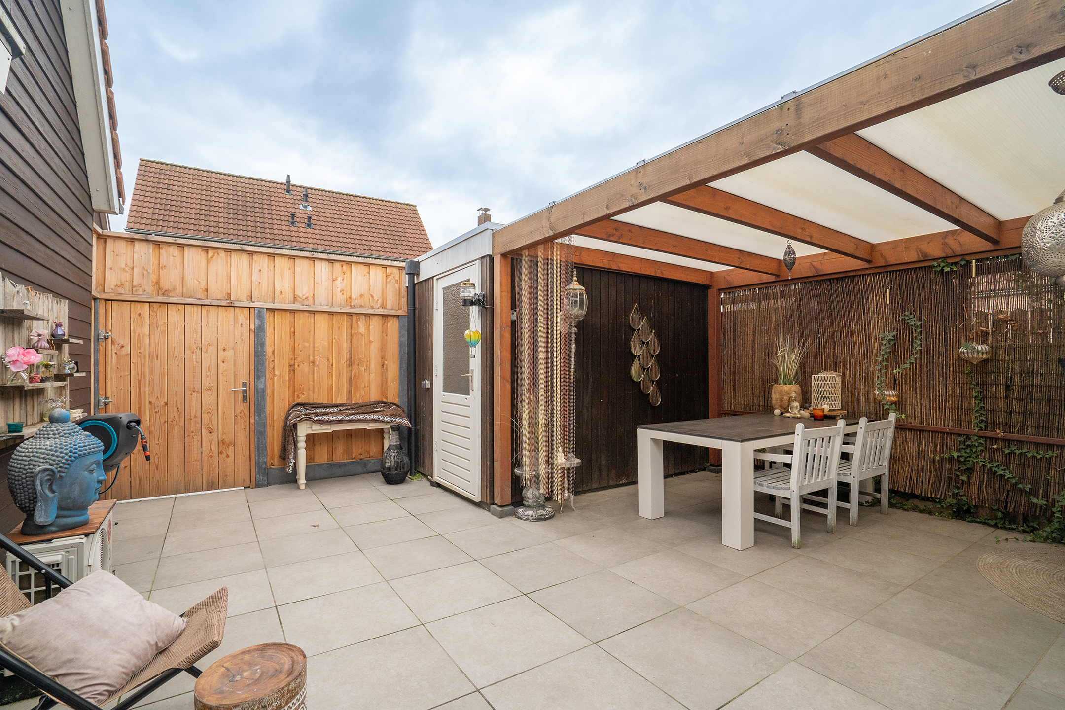 - De overkapping is ruim van opzet en er kan heerlijk worden genoten tijdens de zomeravonden.