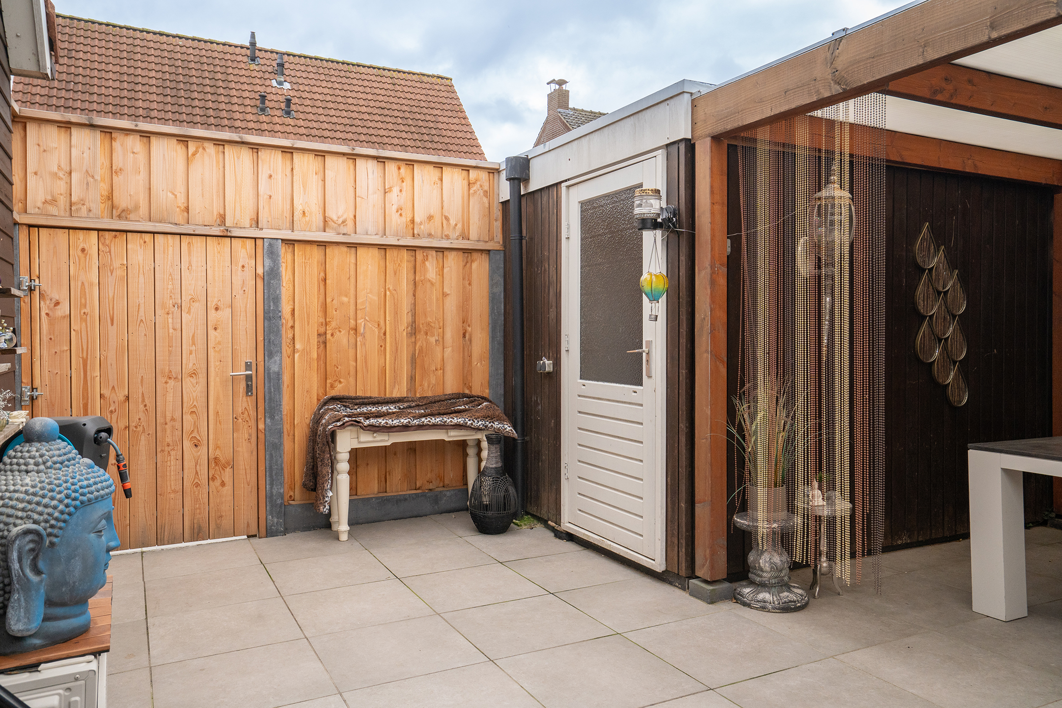 - De tuin is bereikbaar via de poort aan de zijkant van de woning.