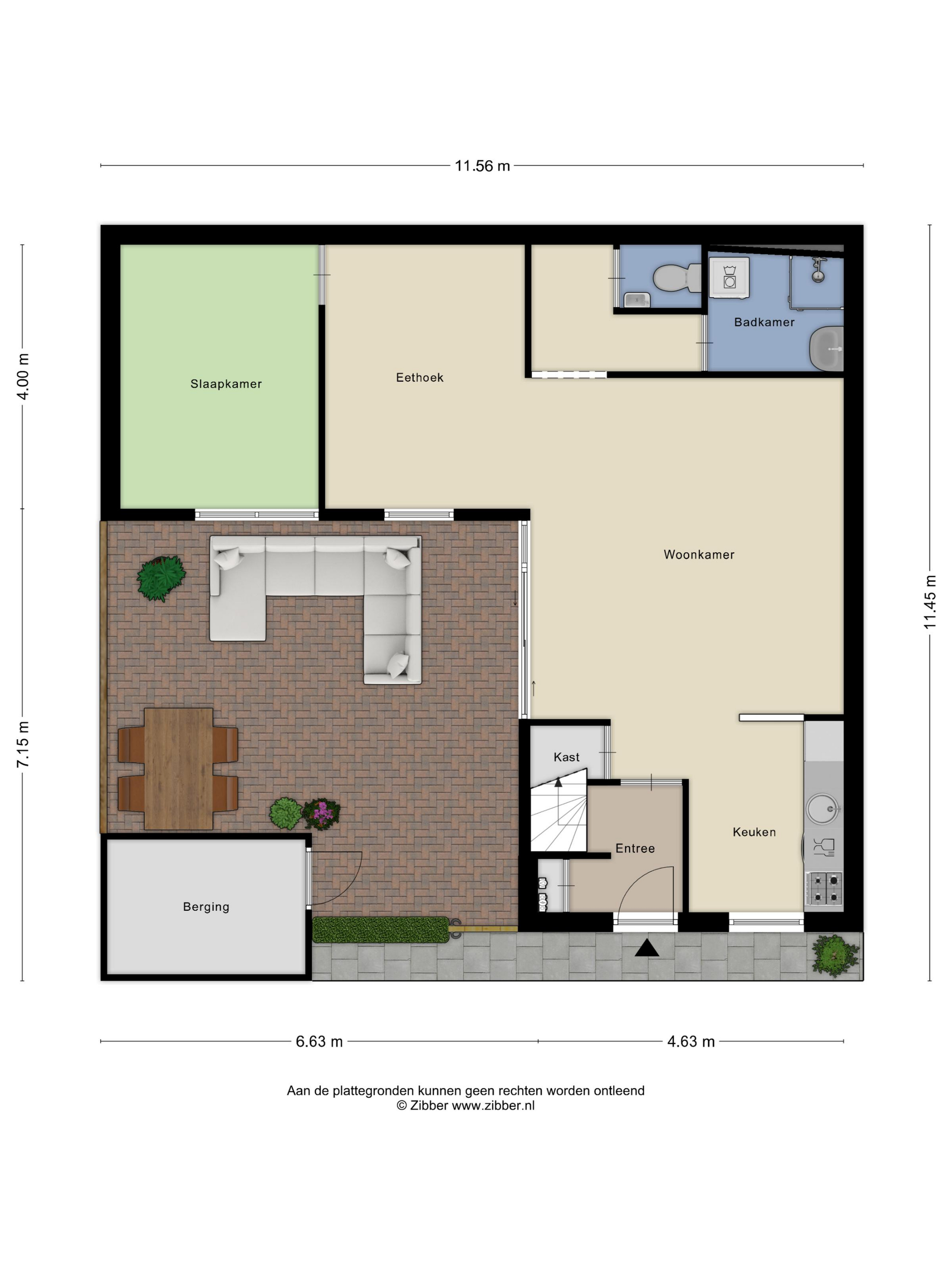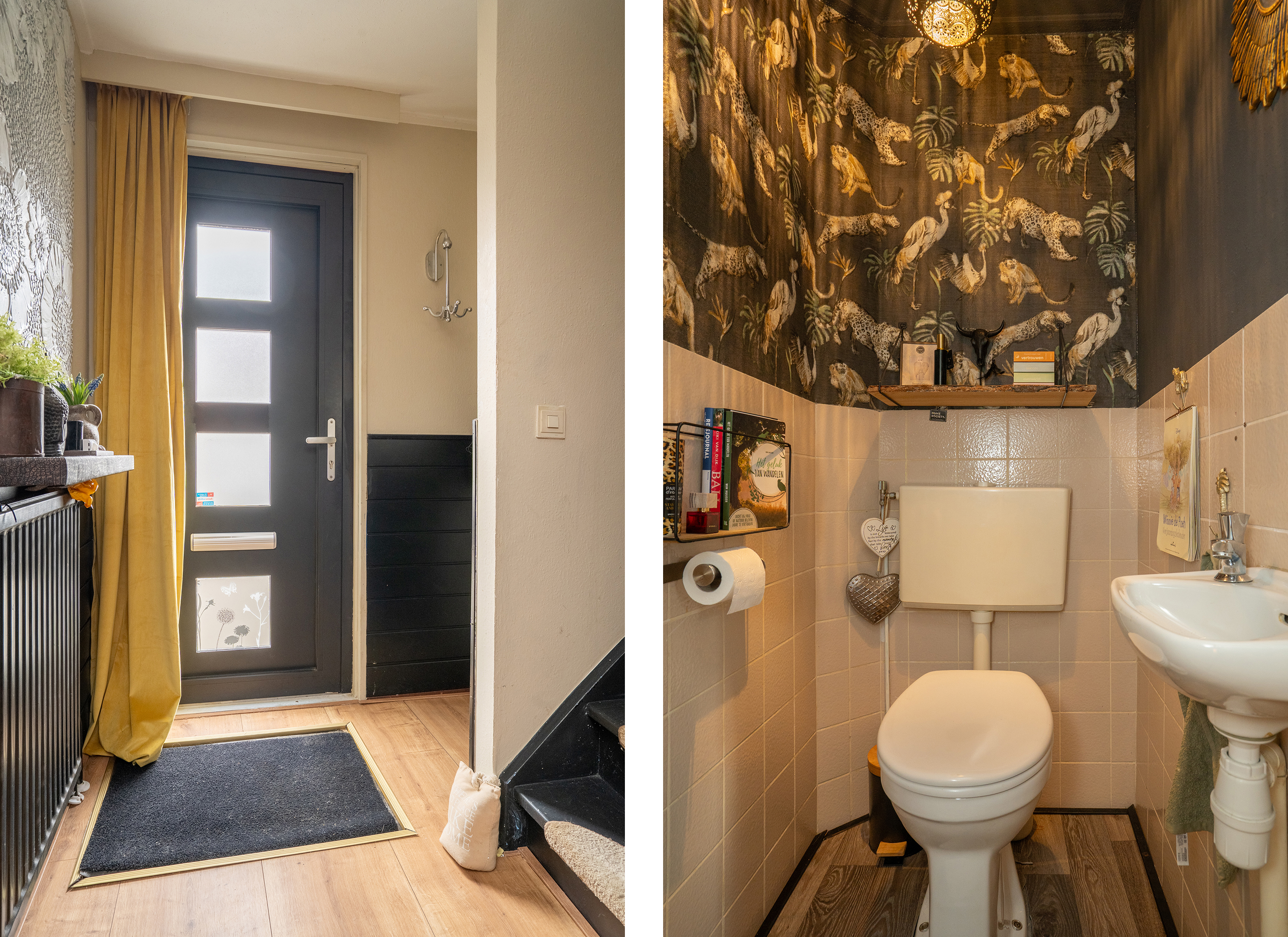 De begane grond is tot in detail verzorgd en praktisch ingedeeld, met alles gelijkvloers binnen handbereik. De huidige indeling biedt bovendien de mogelijkheid om zelf te bepalen waar je het woon- of eetgedeelte wilt realiseren, afhankelijk van je eigen woonwensen.