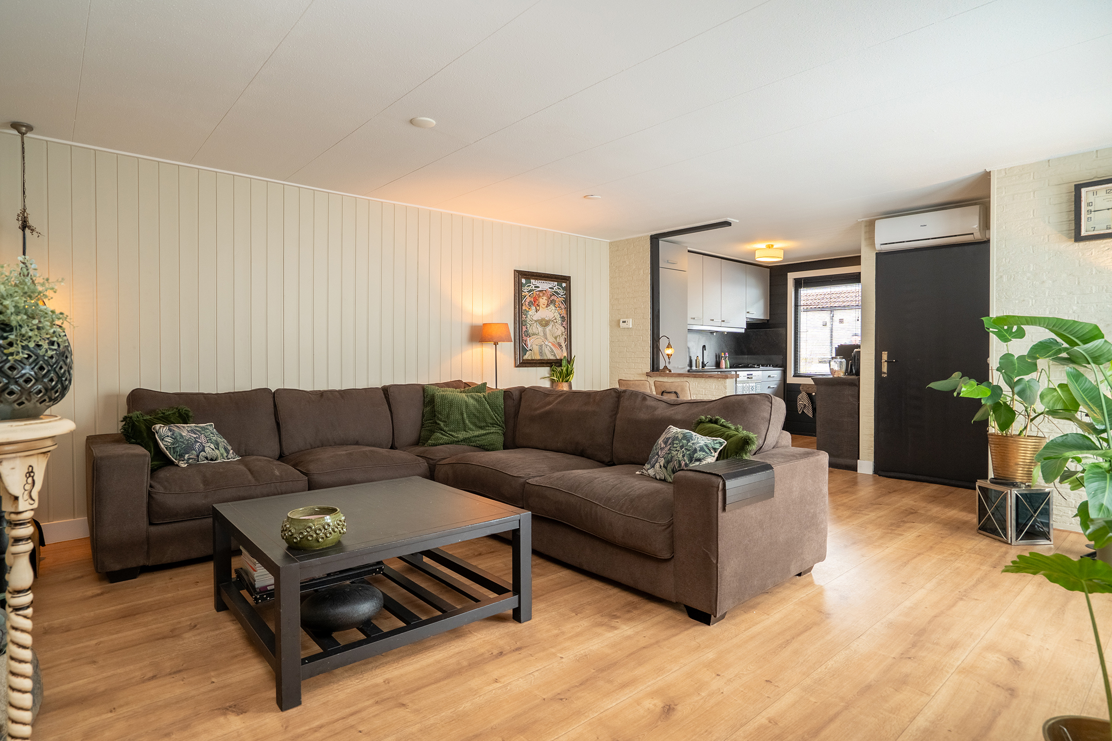 De woonkamer is ruim en licht. De grote schuifpui aan de tuinzijde zorgt voor veel daglicht en verbindt binnen en buiten op een prettige manier. Je loopt zo de onderhoudsvriendelijke achtertuin in. Daarnaast is de woonkamer voorzien van een airco, wat zorgt voor extra comfort tijdens warme zomerdagen of koude winteravonden.