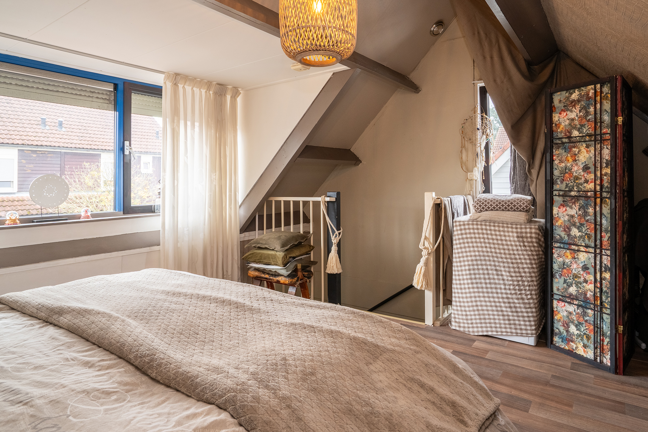 1e verdieping: Via de vaste trap bereik je de royale slaapverdieping. Dankzij de dakkapel geniet de kamer van veel natuurlijke lichtinval en een prettig ruimtelijk gevoel. Het betreft een heerlijke slaapkamer met voldoende ruimte voor een groot bed.