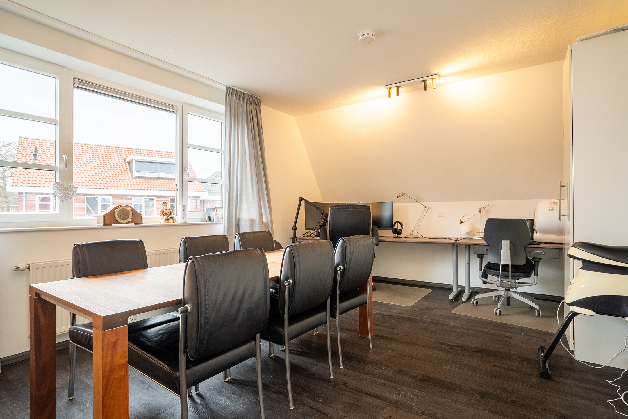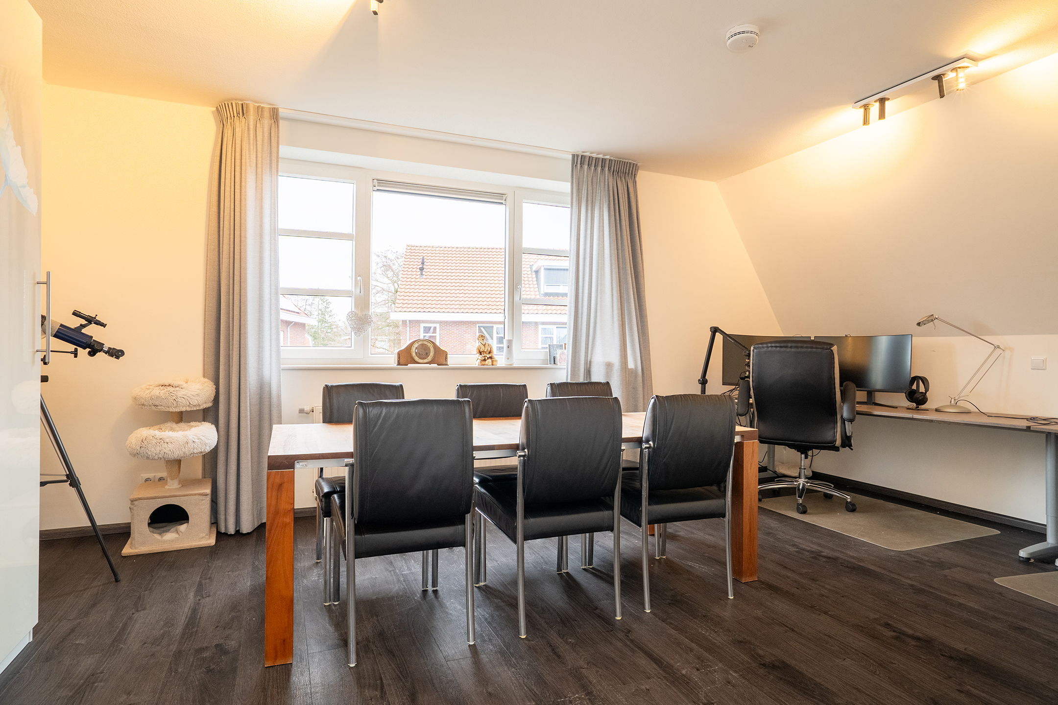Uniek is de grote hobby- of multifunctionele ruimte op de begane grond. Deze ruimte leent zich uitstekend voor een thuiswerkplek, praktijk aan huis, speelkamer, fitnessruimte of extra lounge. Daarnaast zijn er praktische voorzieningen zoals een bijkeuken, inpandige garage en voldoende bergruimte.
