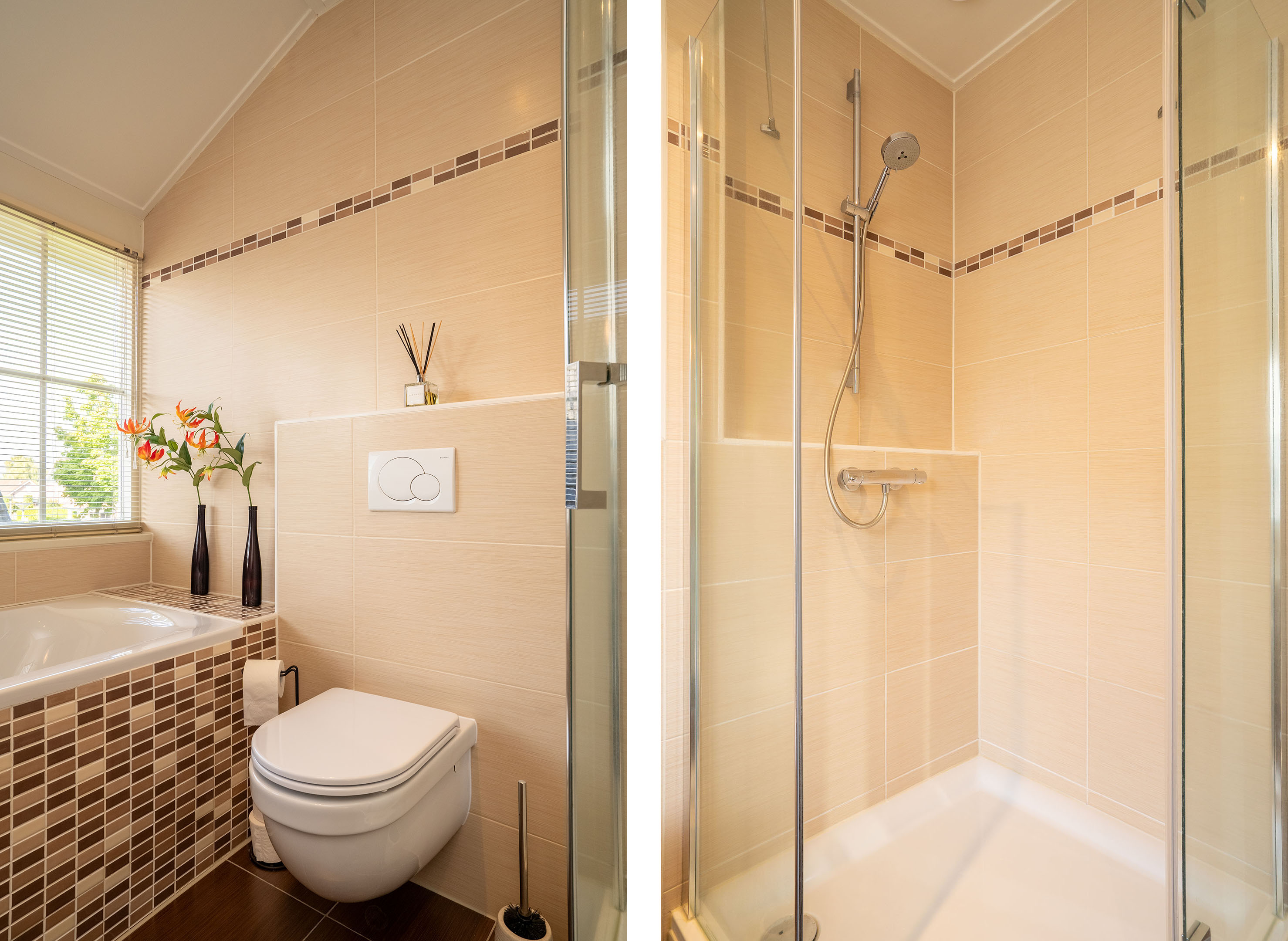 Eerste verdieping: Op de eerste verdieping vind je drie volwaardige slaapkamers, waaronder een royale master bedroom met veel bergruimte. De overige kamers zijn perfect als kinderkamer, logeerkamer of thuiswerkplek. De badkamer is modern ingericht en biedt alles wat je nodig hebt voor een frisse start of een ontspannen moment voor jezelf.