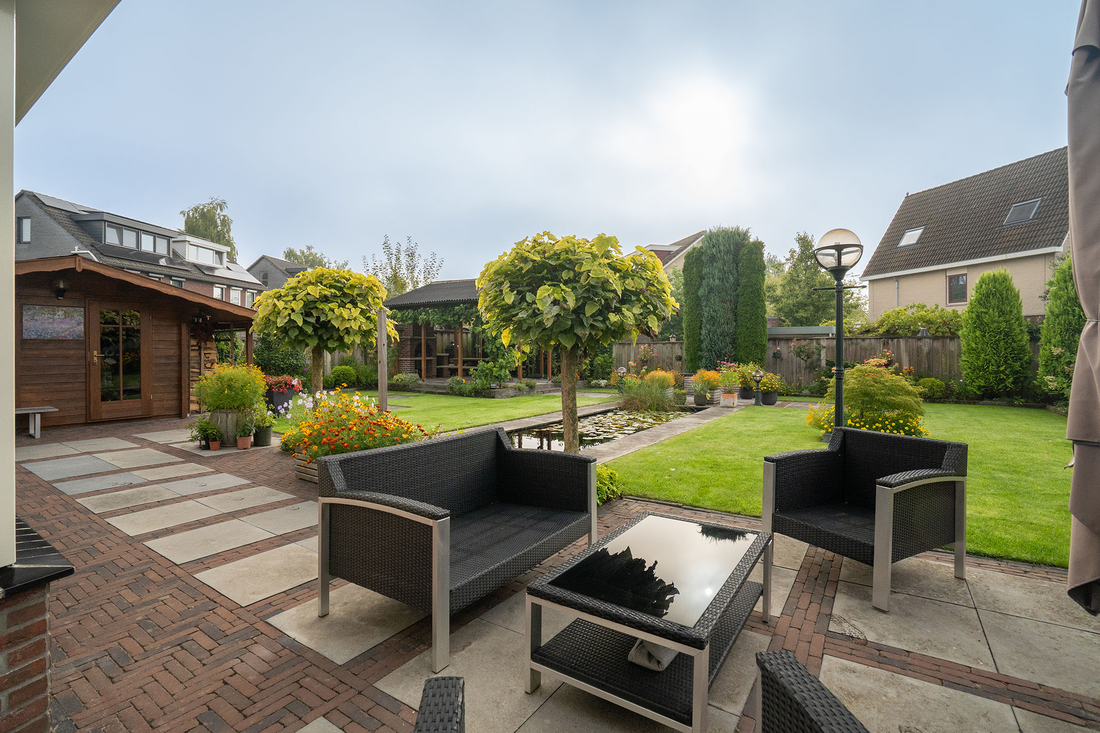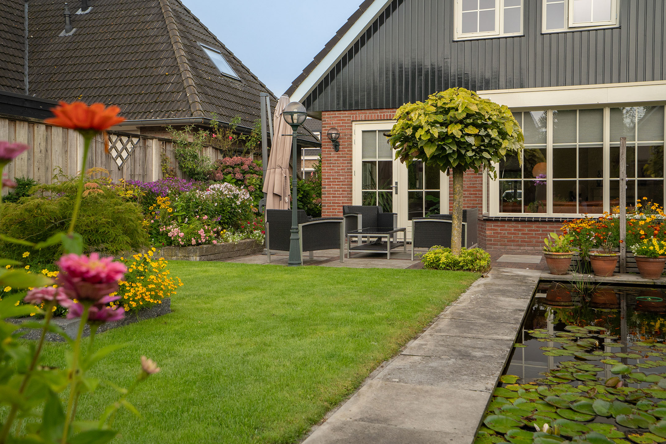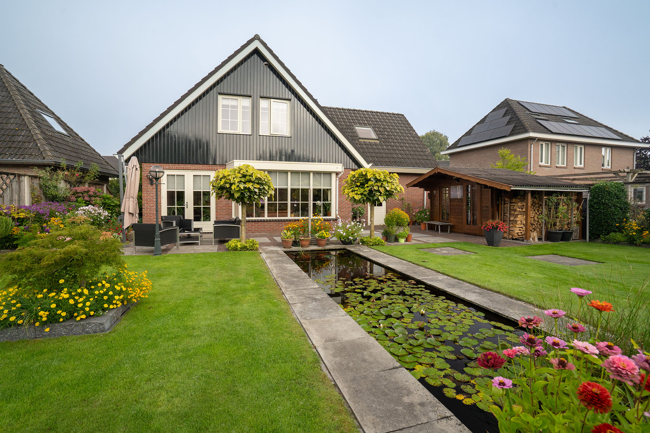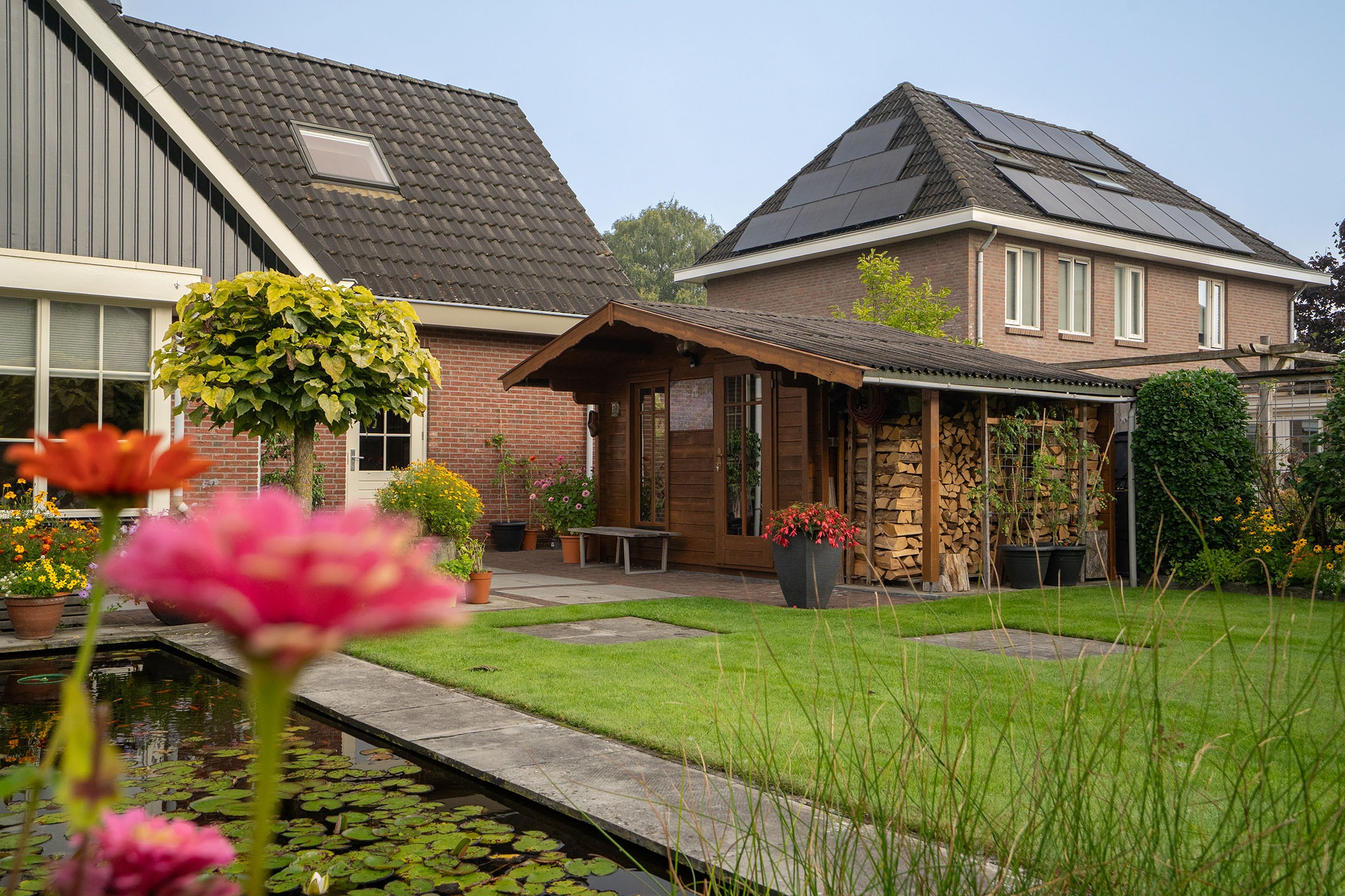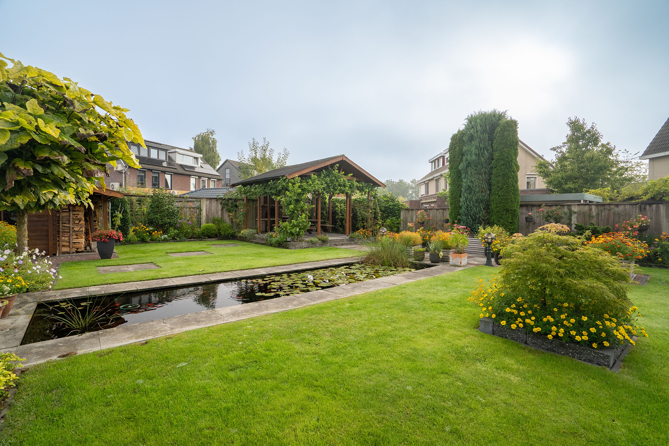 Maar het echte hoogtepunt? De schitterend aangelegde tuin met vijver, meerdere terrassen en een vrijstaande overkapping. Hier geniet je in alle privacy van lange zomerdagen, sfeervolle avonden en alles daartussenin. Een plek waar je zowel kunt ontspannen als gezellig samen kunt zijn met familie en vrienden.
