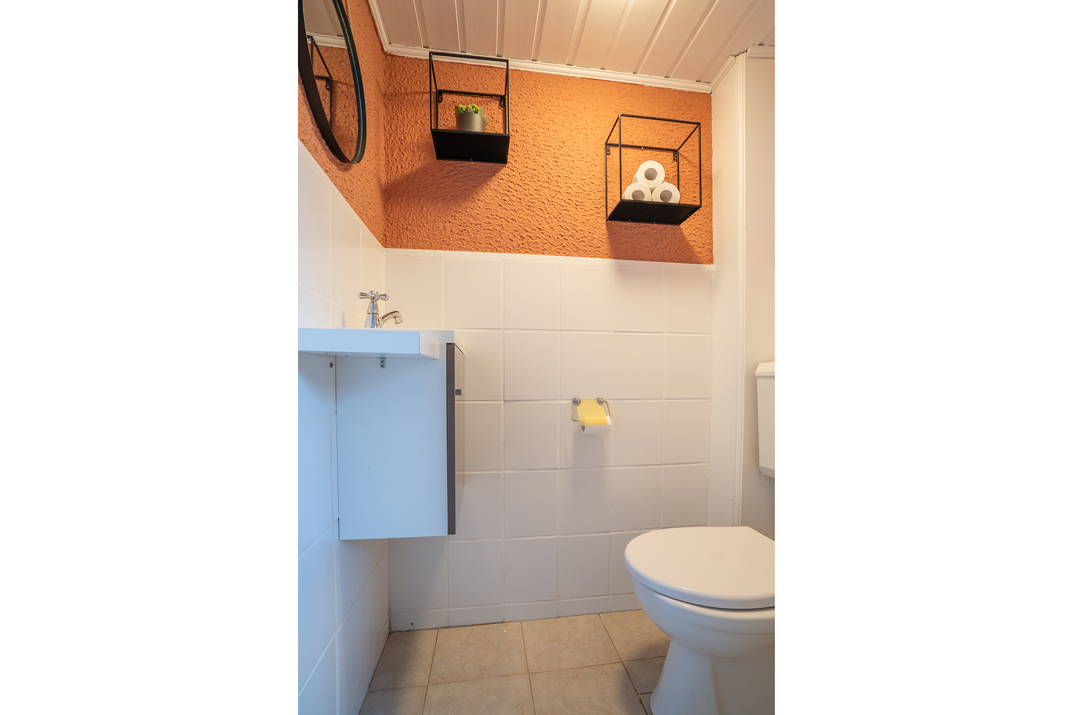 Aansluitend aan de keuken bevindt zich een tussenhal. Vanuit deze hal heb je toegang tot de toiletruimte, de tuin én de bijkeuken, welke achter de hal is gelegen.