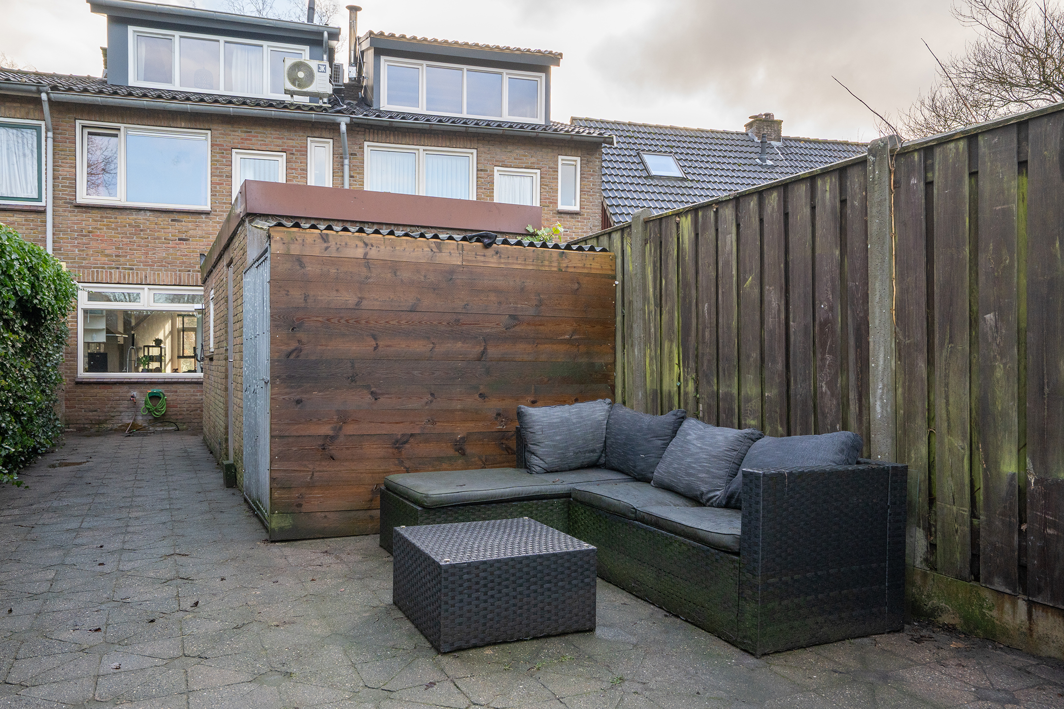 Tuin: Middels de achterdeur bereik je de diepe, onderhoudsvriendelijke achtertuin, die volledig is bestraat en direct grenst aan de woning. De tuin is praktisch ingericht, biedt ruimte voor een comfortabel zitgedeelte en is afgesloten middels een poort, waardoor je hier volop privacy geniet.