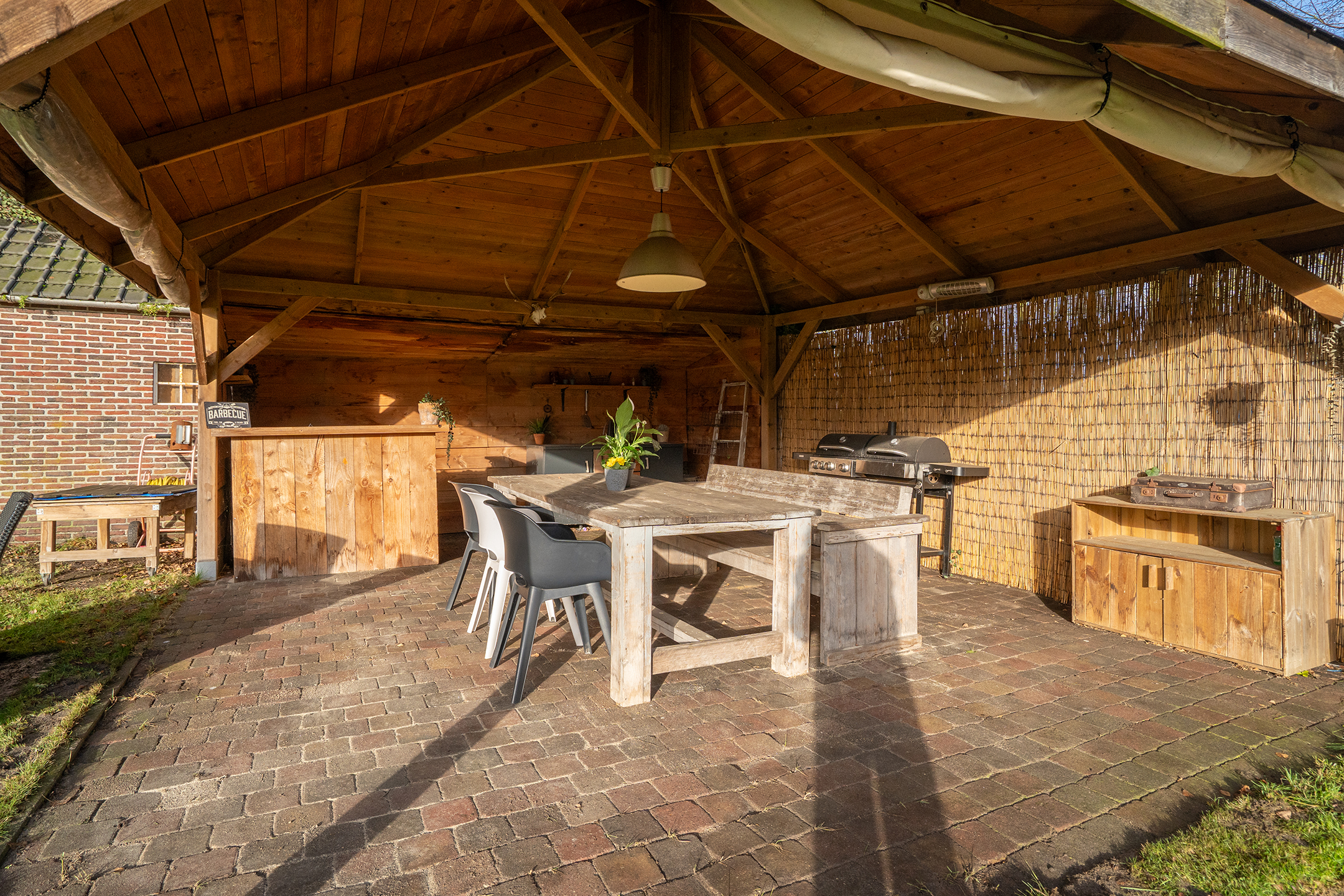 Daarnaast bevindt zich op dit perceel een sfeervolle overkapping, waar je het hele jaar door heerlijk kunt genieten van lange avonden met familie en vrienden.