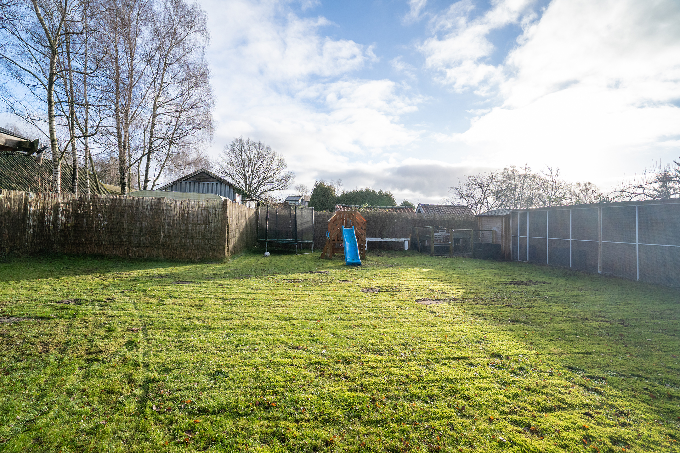 Wat deze woning bijzonder maakt, is de aanwezigheid van een garagebox én een extra perceel tuingrond. Het totale perceel bedraagt circa 1.042 m², waarvan circa 628 m² eigendom is en circa 414 m² gezamenlijke grond betreft (onder andere in gebruik als recht van overgang).