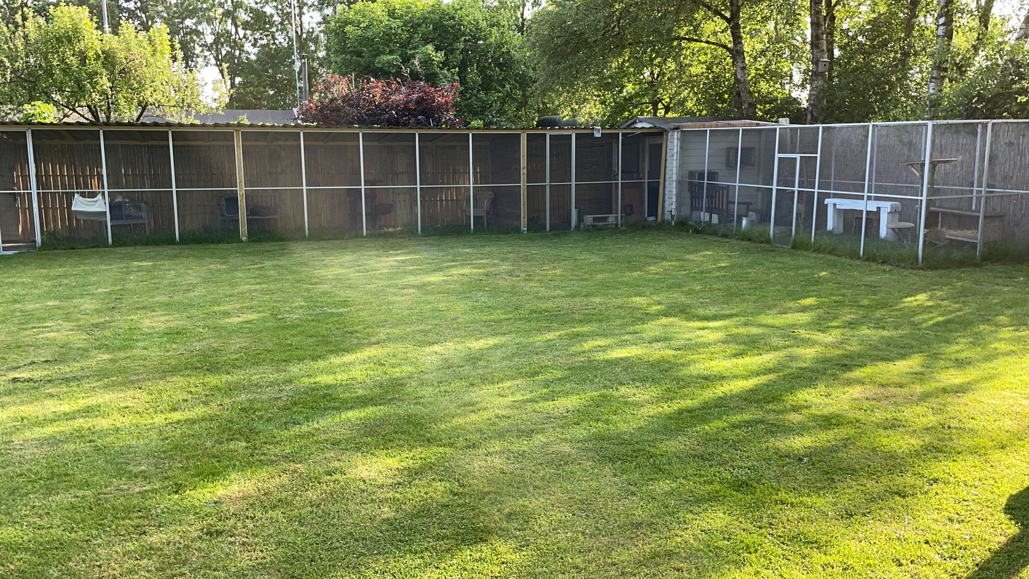 Achter de garageboxen ligt een extra perceel tuingrond, momenteel ingericht als grasveld. Dit perceel biedt niet alleen extra ruimte en privacy, maar is ook voorzien van elektra en stromend water, wat het geschikt maakt voor uiteenlopende gebruiksmogelijkheden, zoals een speelweide of moestuin. Bij dit perceel is bovendien ruimte om nog eens twee auto’s op eigen terrein te parkeren, wat het totaal brengt op vier privéparkeerplaatsen.