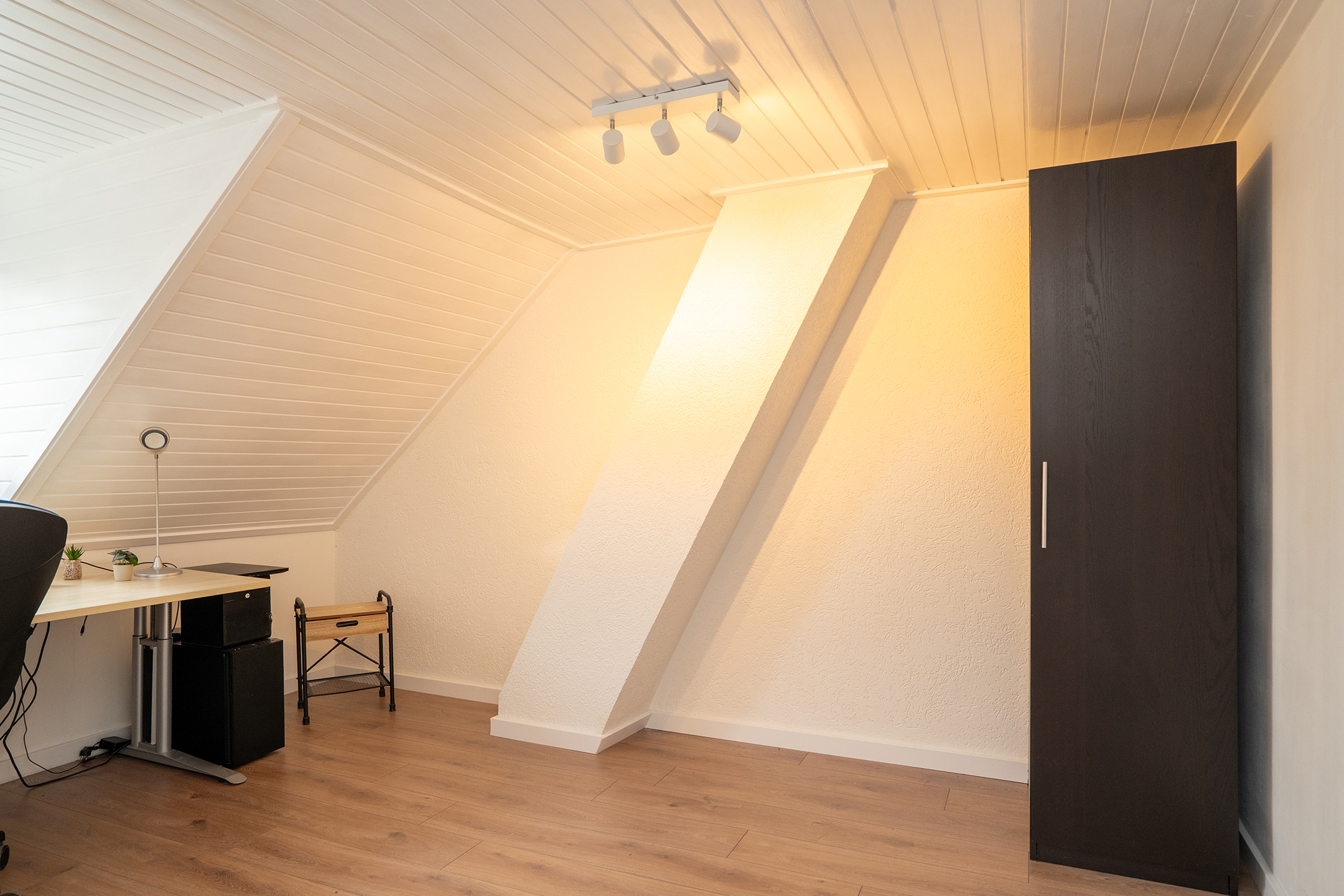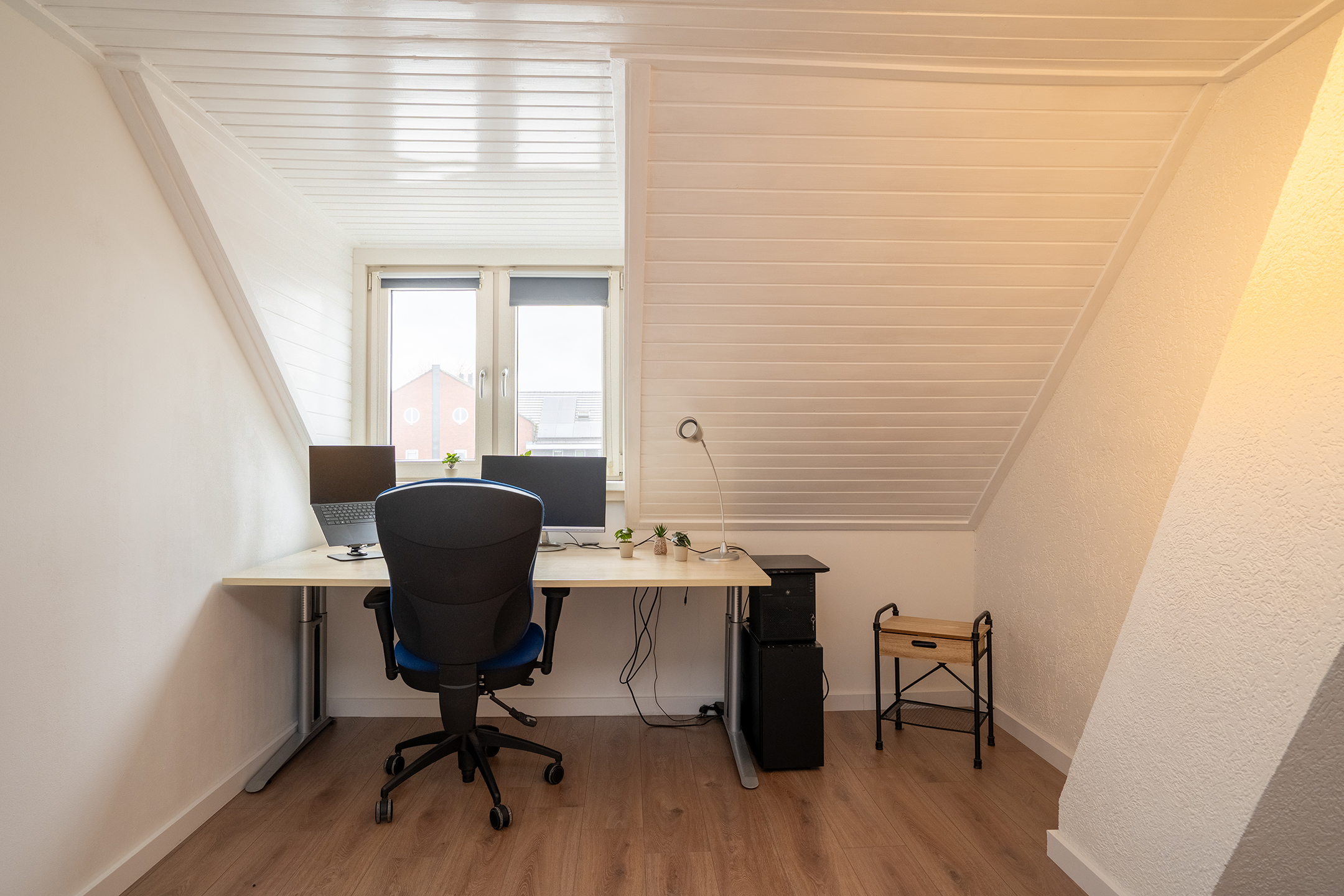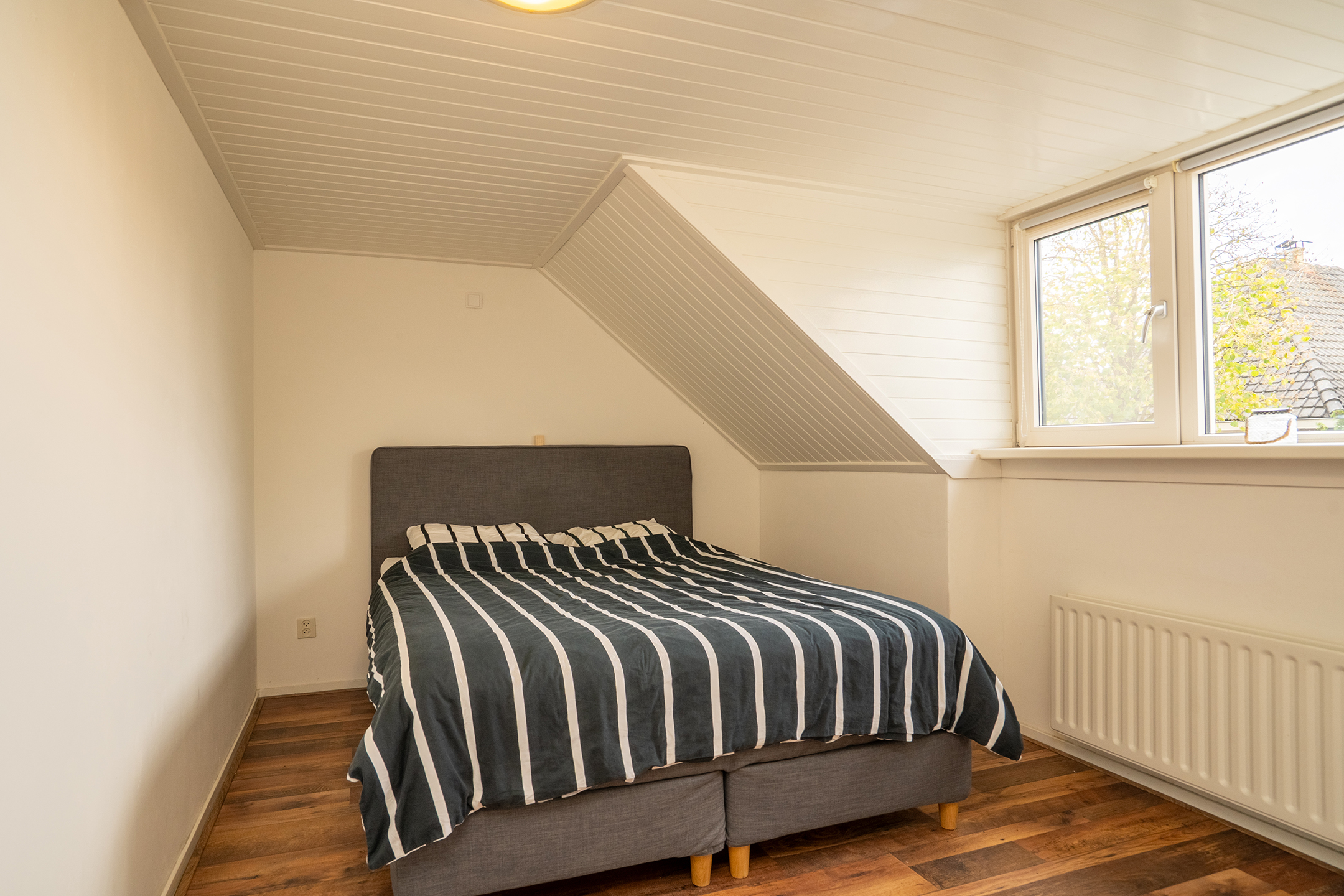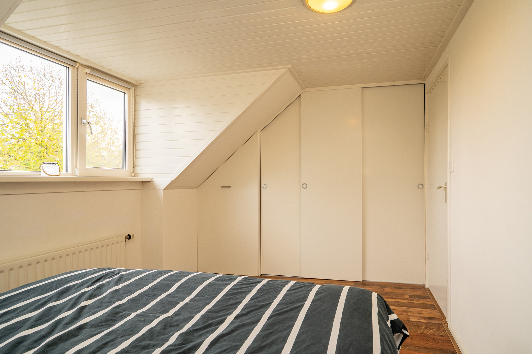 1e verdieping: Vanaf de overloop zijn drie slaapkamers bereikbaar. Alle kamers zijn netjes afgewerkt met lichte wanden en een laminaatvloer. De grootste slaapkamer ligt aan de voorzijde van de woning en beschikt over praktische inbouwkasten. Aan de achterzijde liggen twee slaapkamers: één is eveneens ruim en ideaal als slaapkamer, de derde kamer is kleiner van formaat, maar prima geschikt als werkkamer, opbergruimte of kinderkamer. Dankzij de dakkapellen aan zowel de voor- als achterzijde is er volop lichtinval.