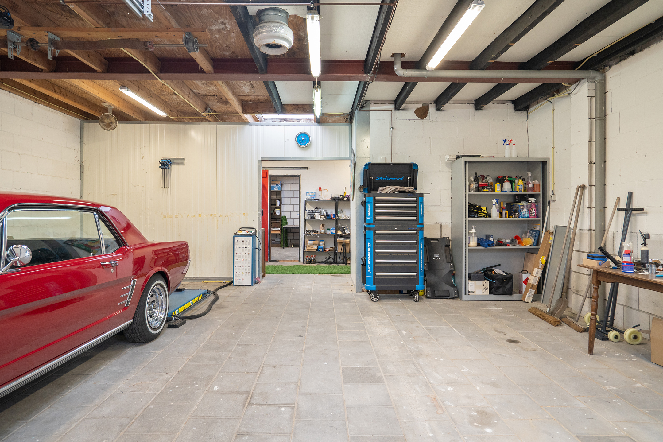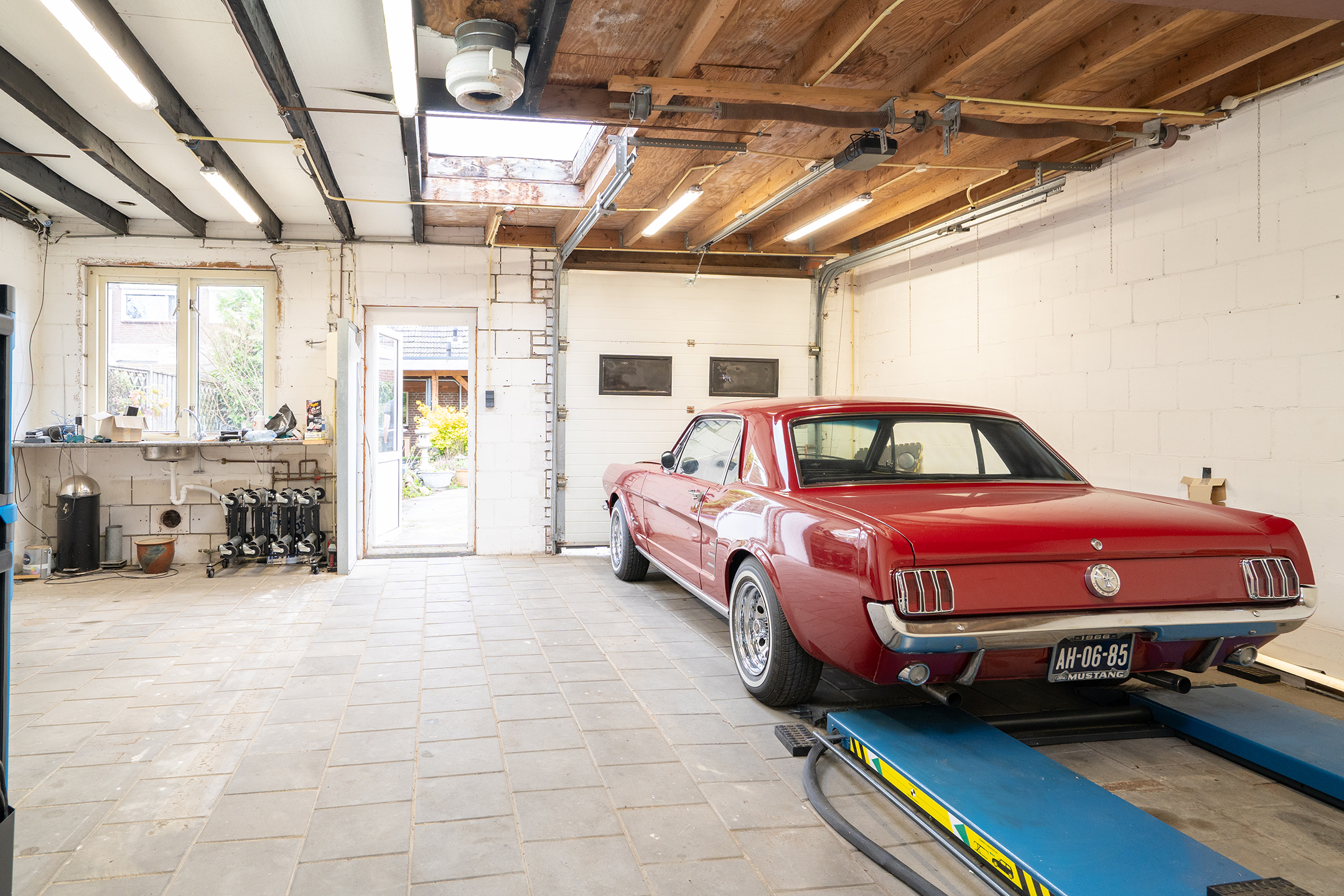 Achter op het perceel staat een grote, vrijstaande garage met elektrische overheaddeur, krachtstroom, werkruimte en extra bergruimte. Ideaal voor wie op zoek is naar ruimte voor hobby’s, opslag of het stallen van een klassieker. Met een breedte van circa 7,5 meter en een diepte van circa 14 meter biedt de garage volop mogelijkheden.