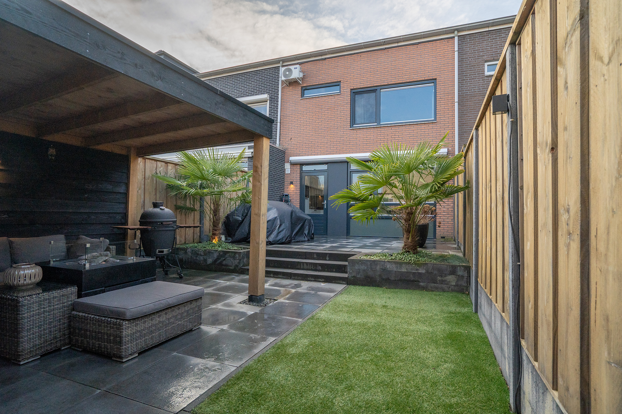 Tuin: De woning beschikt over een heerlijke, onderhoudsvriendelijke achtertuin met een prettige indeling en meerdere zitplekken, waardoor er altijd een fijn plekje te vinden is om te ontspannen. De tuin is voorzien van een prachtige overkapping, ideaal om van het buitenleven te genieten. Daarnaast beschikt de tuin over een vrijstaande berging en een eigen achterom, wat zorgt voor extra gemak.