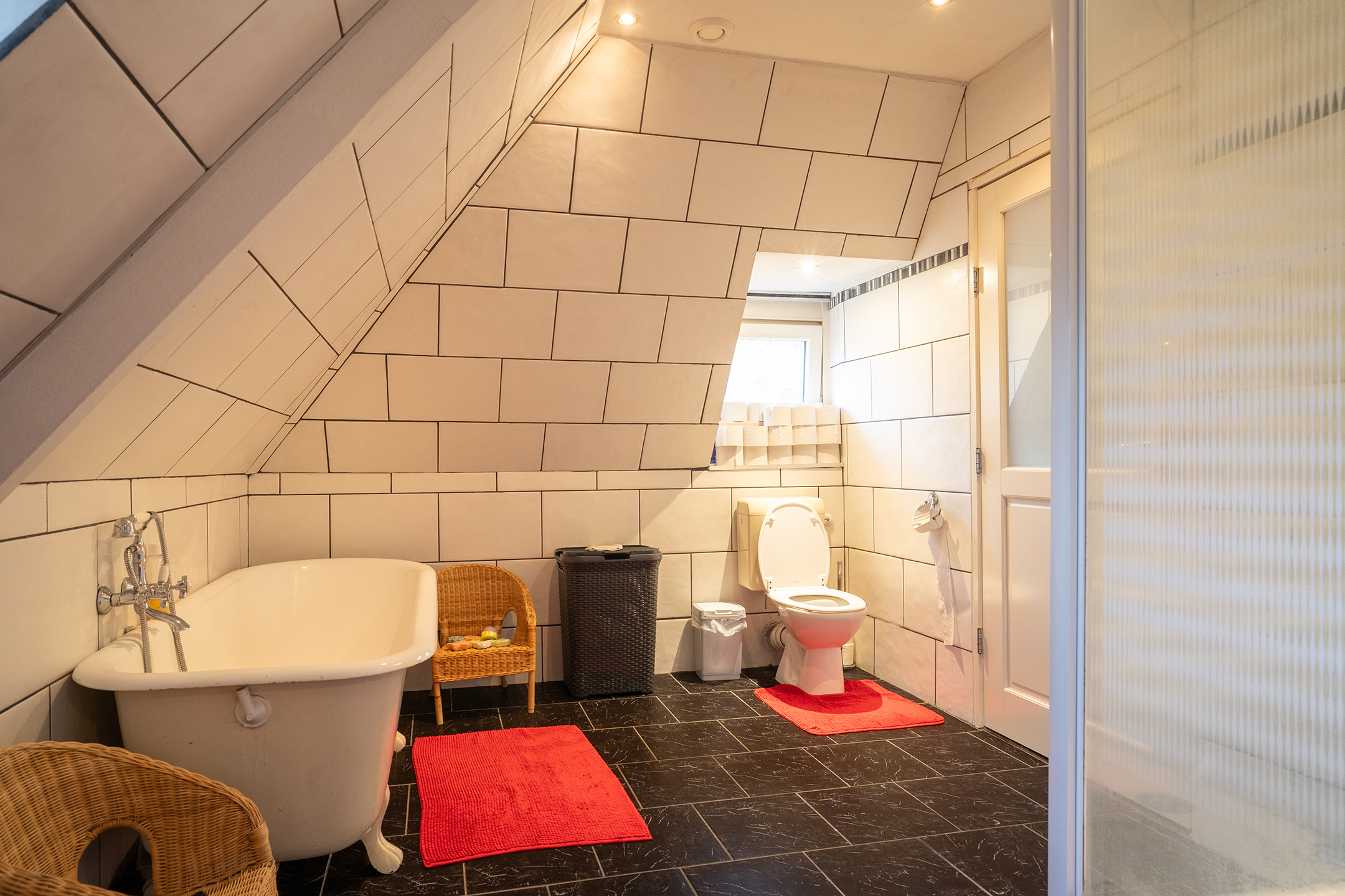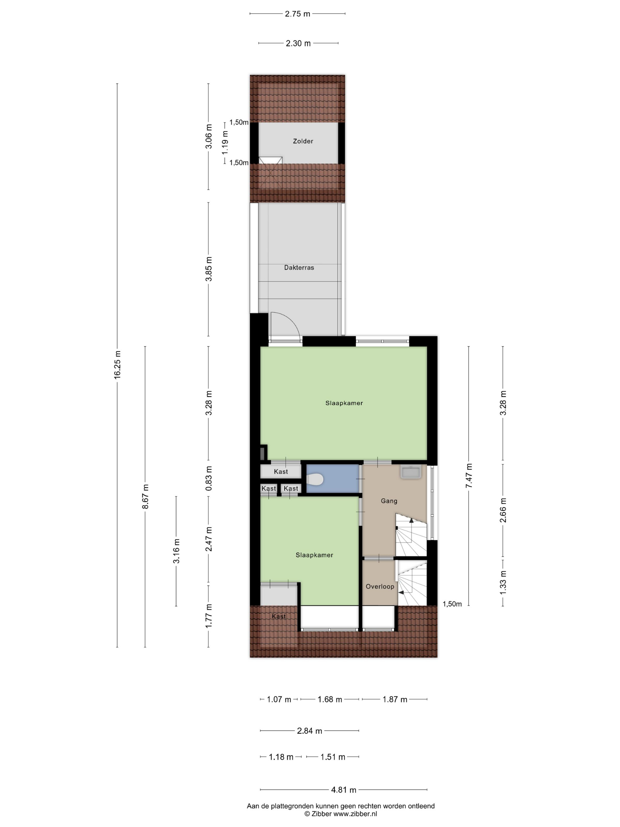 2e Verdieping: Voorzolder, in gebruik als slaapkamer met aansluitend een badkamer, v.v. een ligbad, toilet, wastafelmeubel en een aparte douche.