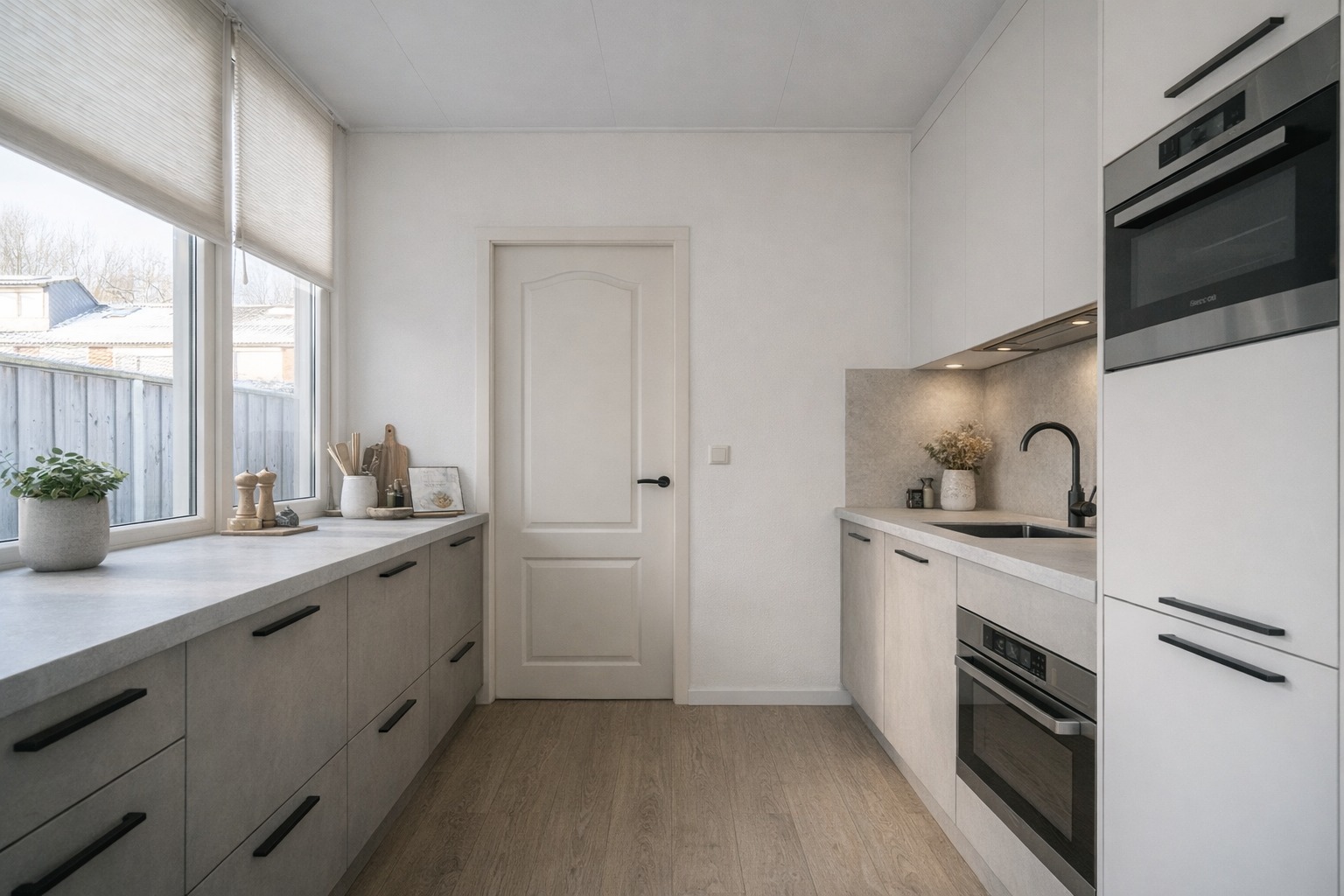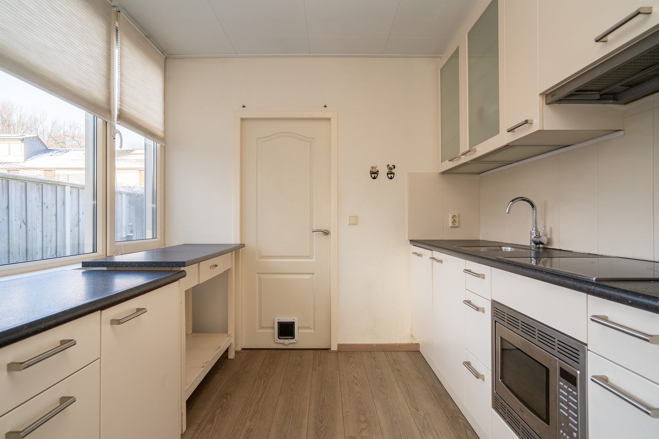 De keuken bevindt zich aan de achterzijde van de woning en staat in verbinding met de bijkeuken/berging. Vanuit hier loop je zo door naar de achtertuin. De tuin is onderhoudsvriendelijk aangelegd en beschikt over een overkapping (2022), waardoor je hier bijna het hele jaar door beschut kunt zitten.