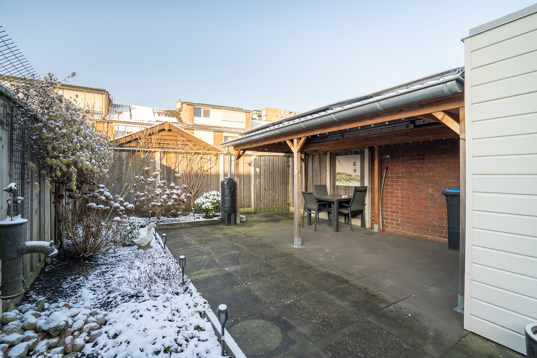 - Onderhoudsvriendelijke tuin met overkapping;