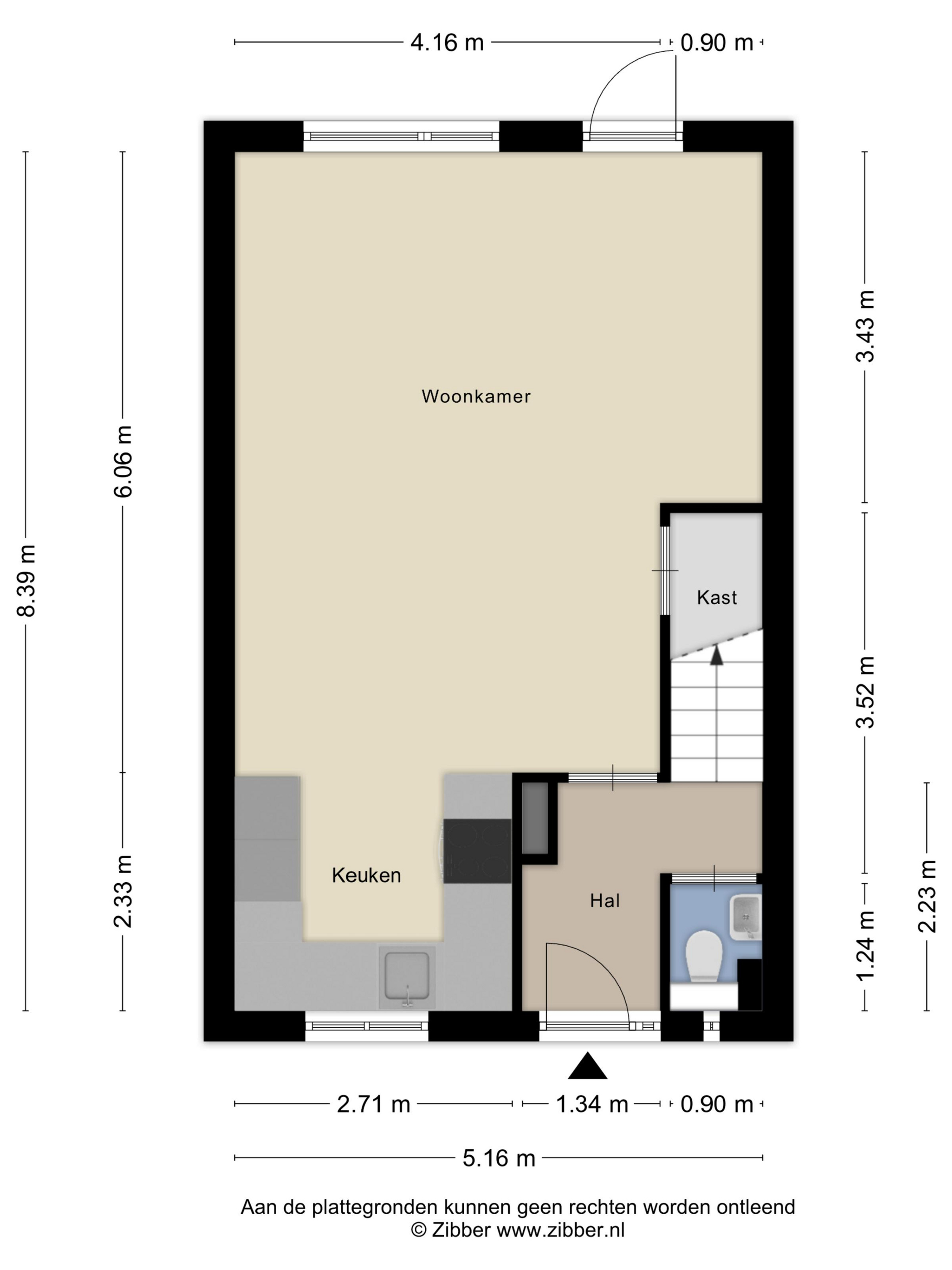 Bij binnenkomst kom je in de hal met meterkast (vernieuwd in 2022), trapopgang, modern toilet en toegang tot de woonkamer. Het toilet is netjes uitgevoerd, volledig betegeld en voorzien van een hangcloset en fontein.