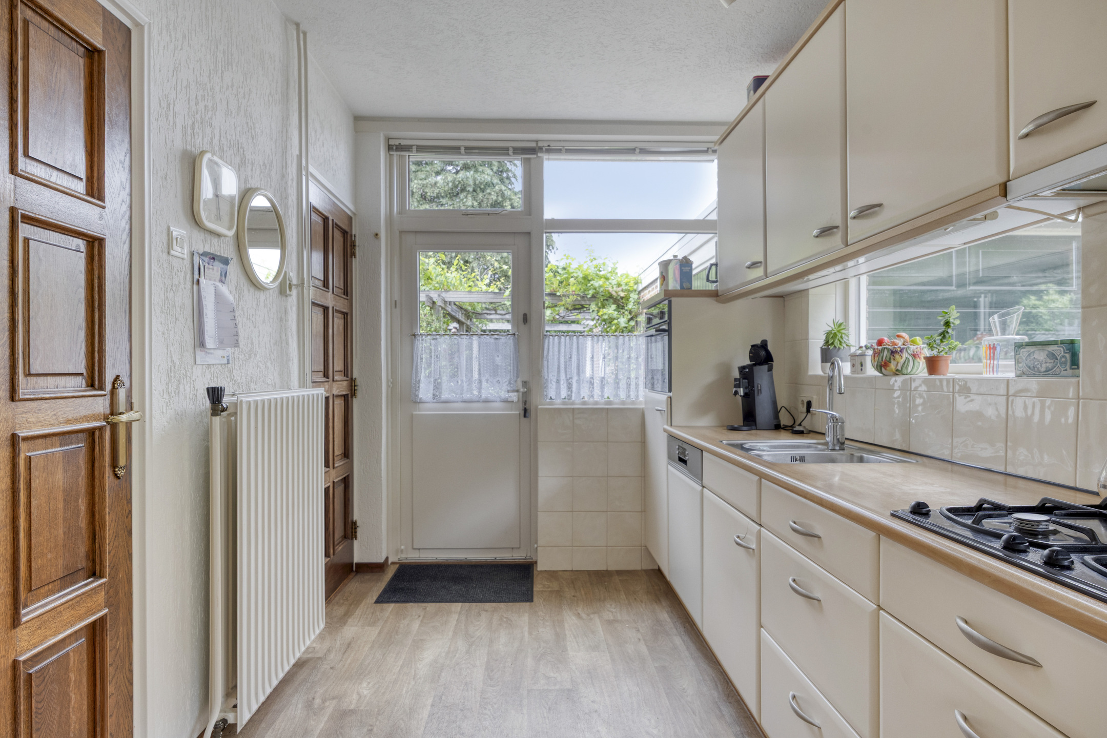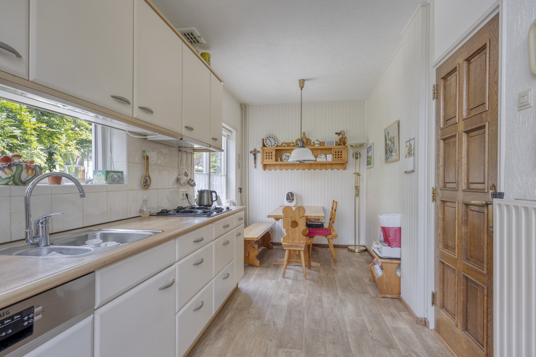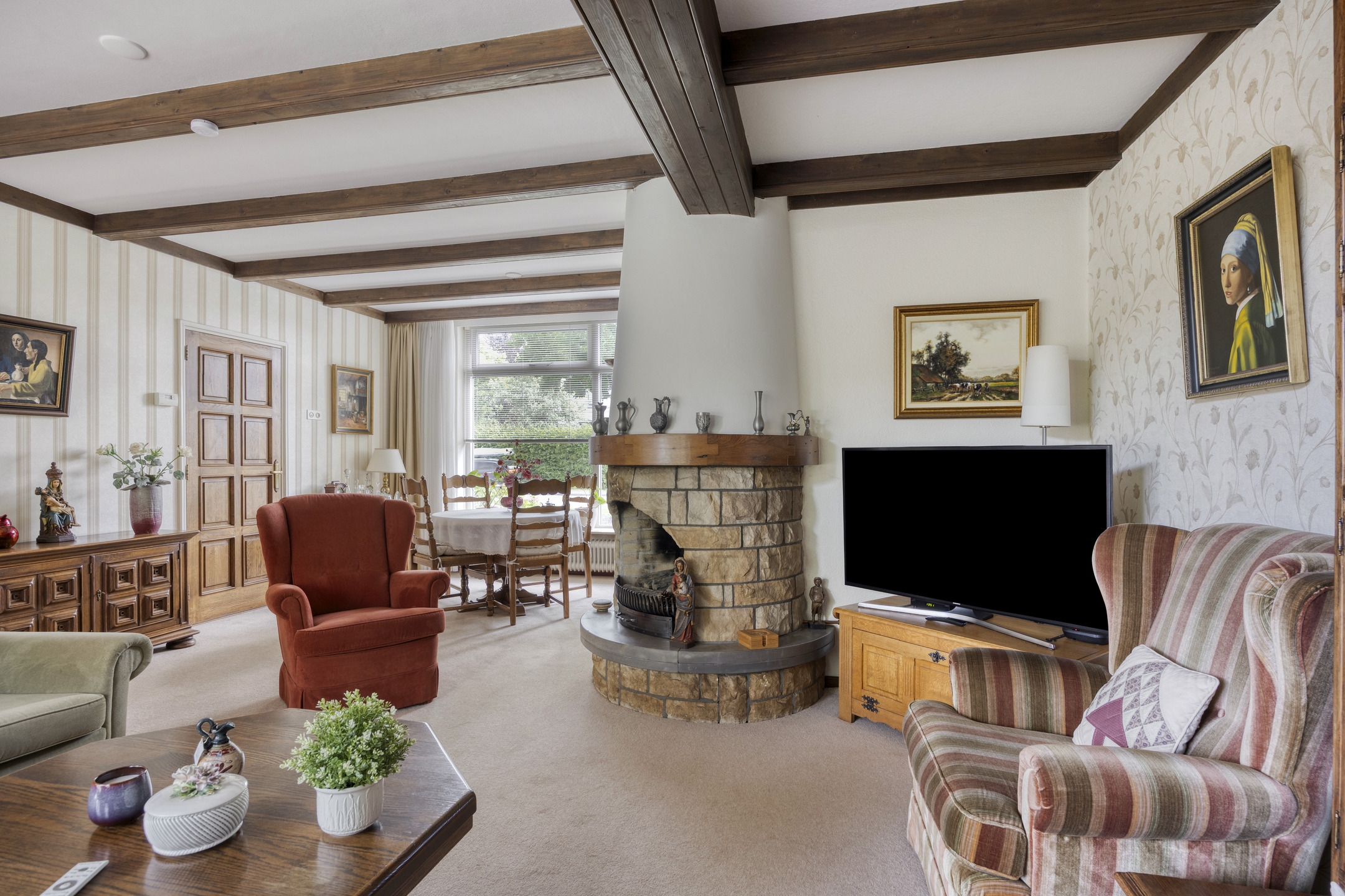 Begane grond: Via de entree met hal, toilet en trapopgang kom je in de lichte en ruime woonkamer. De grote ramen zorgen voor veel daglicht en een prettige verbinding met de tuin. De centrale open haard geeft de woonkamer een warme en gezellige uitstraling. De keuken bevindt zich aan de achterzijde en is voorzien van voldoende werk- en kastruimte. Aangrenzend is er een praktische eetkamer en toegang tot de bijkeuken en de garage.