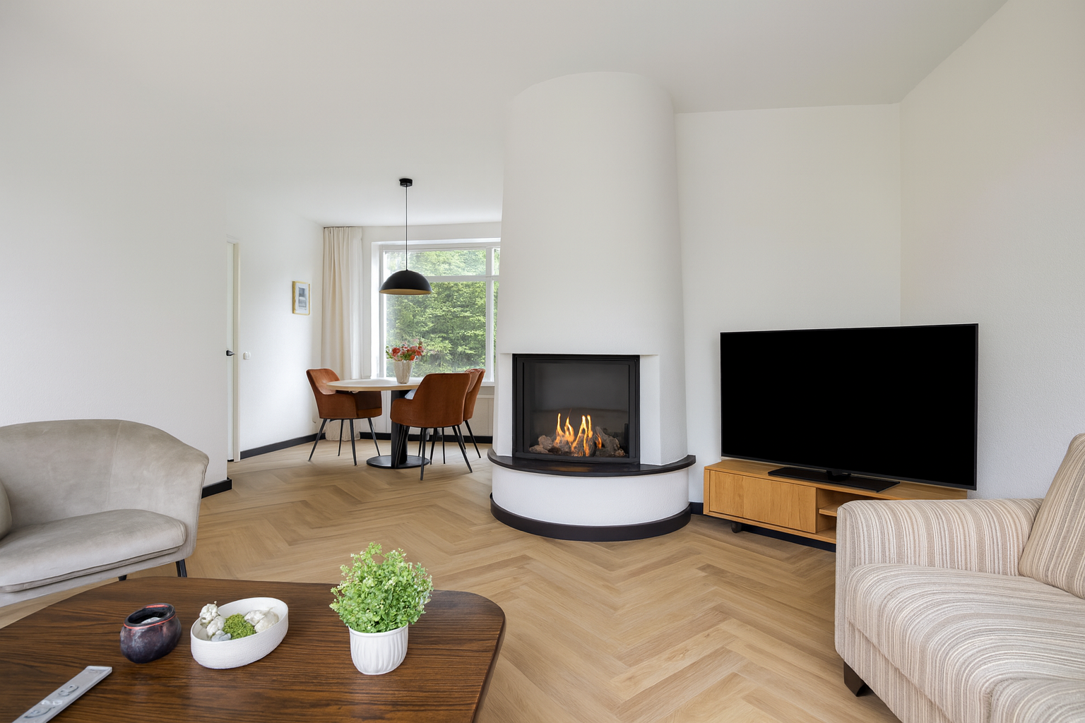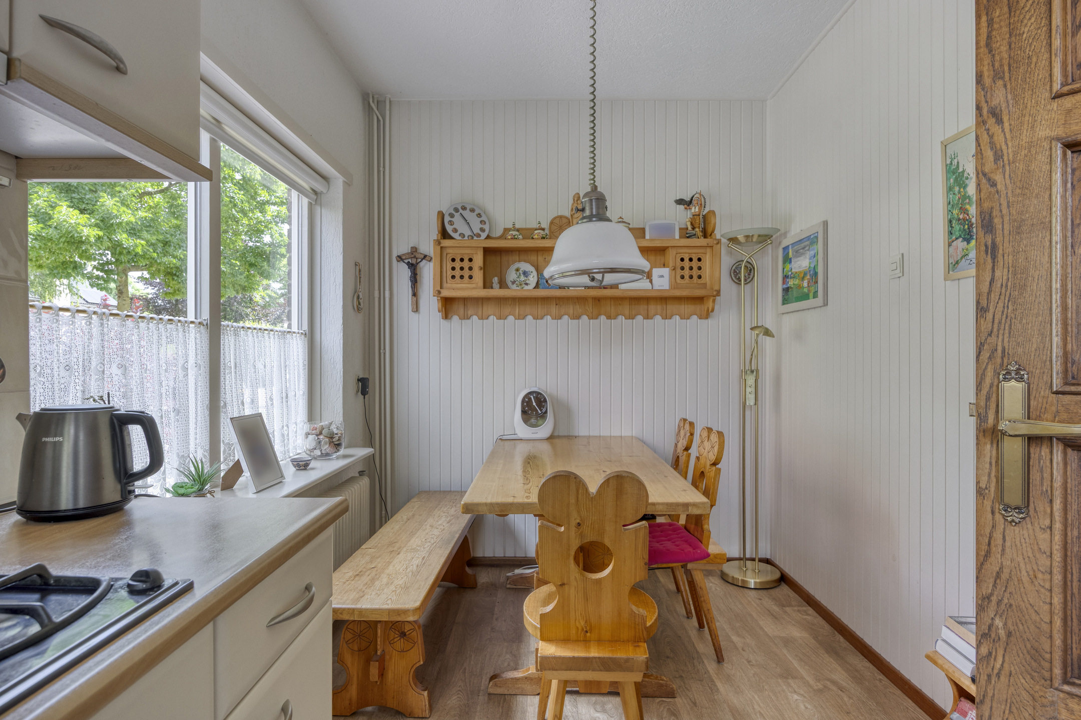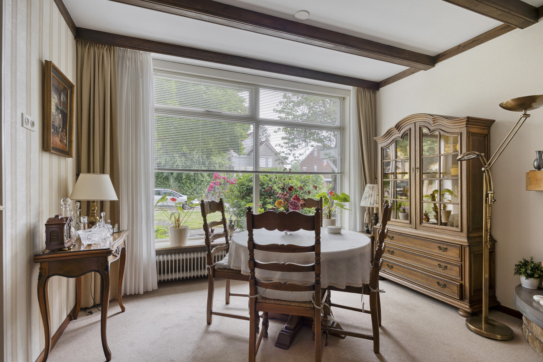 Begane grond: Via de entree met hal, toilet en trapopgang kom je in de lichte en ruime woonkamer. De grote ramen zorgen voor veel daglicht en een prettige verbinding met de tuin. De centrale open haard geeft de woonkamer een warme en gezellige uitstraling. De keuken bevindt zich aan de achterzijde en is voorzien van voldoende werk- en kastruimte. Aangrenzend is er een praktische eetkamer en toegang tot de bijkeuken en de garage.