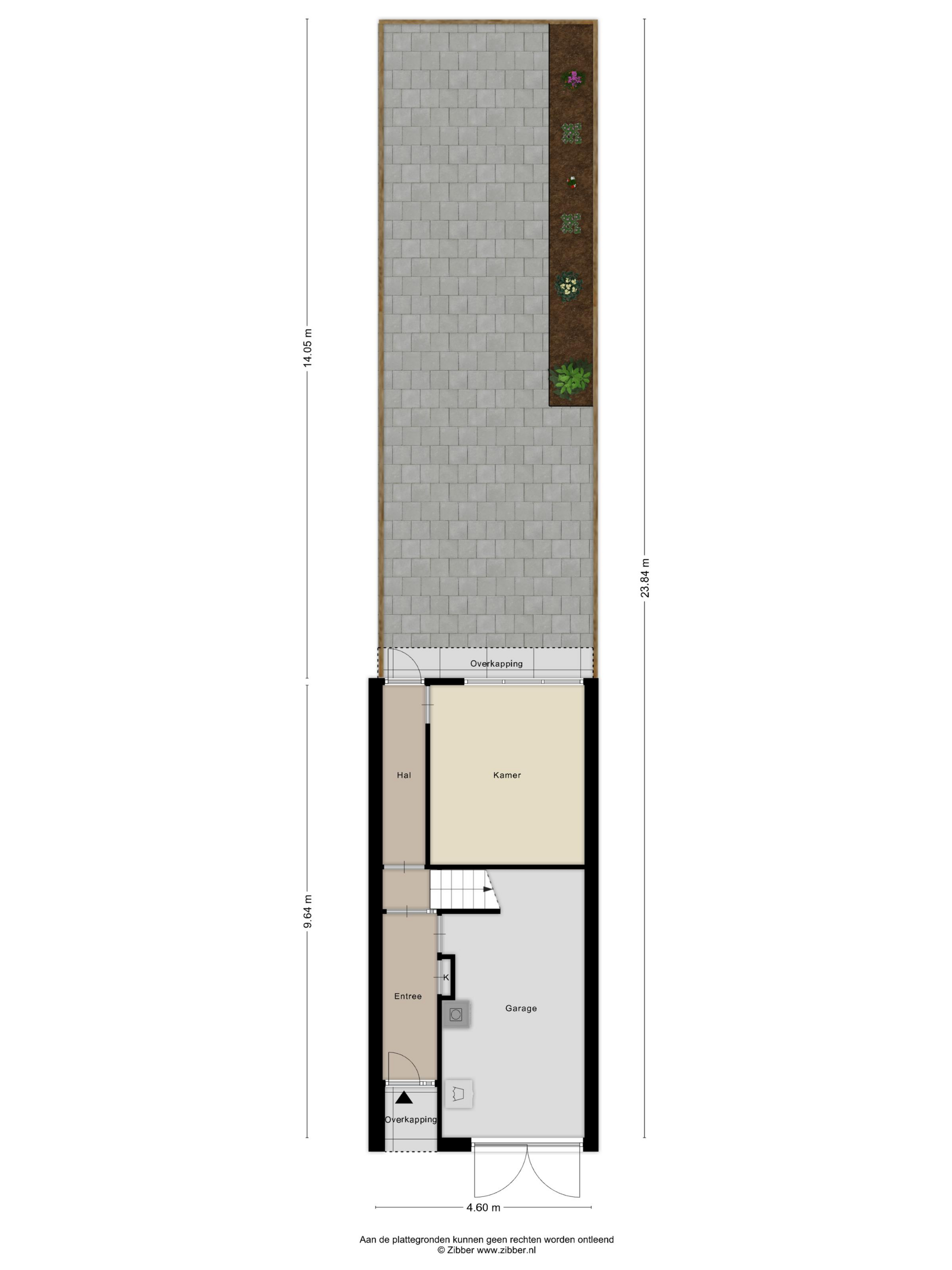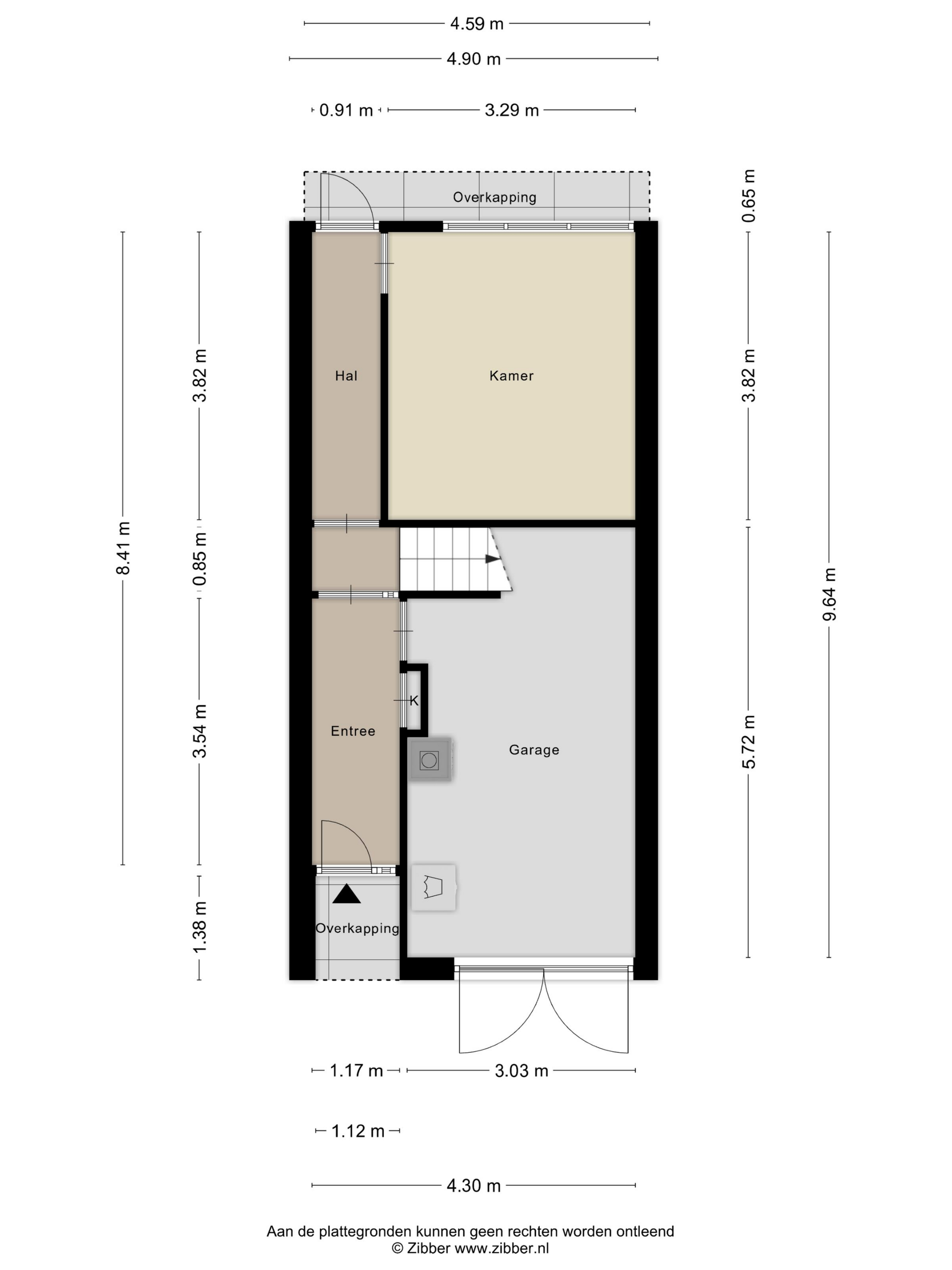 Begane grond: Via de overdekte entree stap je de woning binnen via de hal met meterkast en trapopgang. Vanuit hier is er toegang tot de ruime garage met dubbele deuren aan de voorzijde — ideaal voor hobby of opslag. Aan de achterzijde bevindt zich een tweede hal met toegang tot een royale kamer die uitkijkt op de tuin.