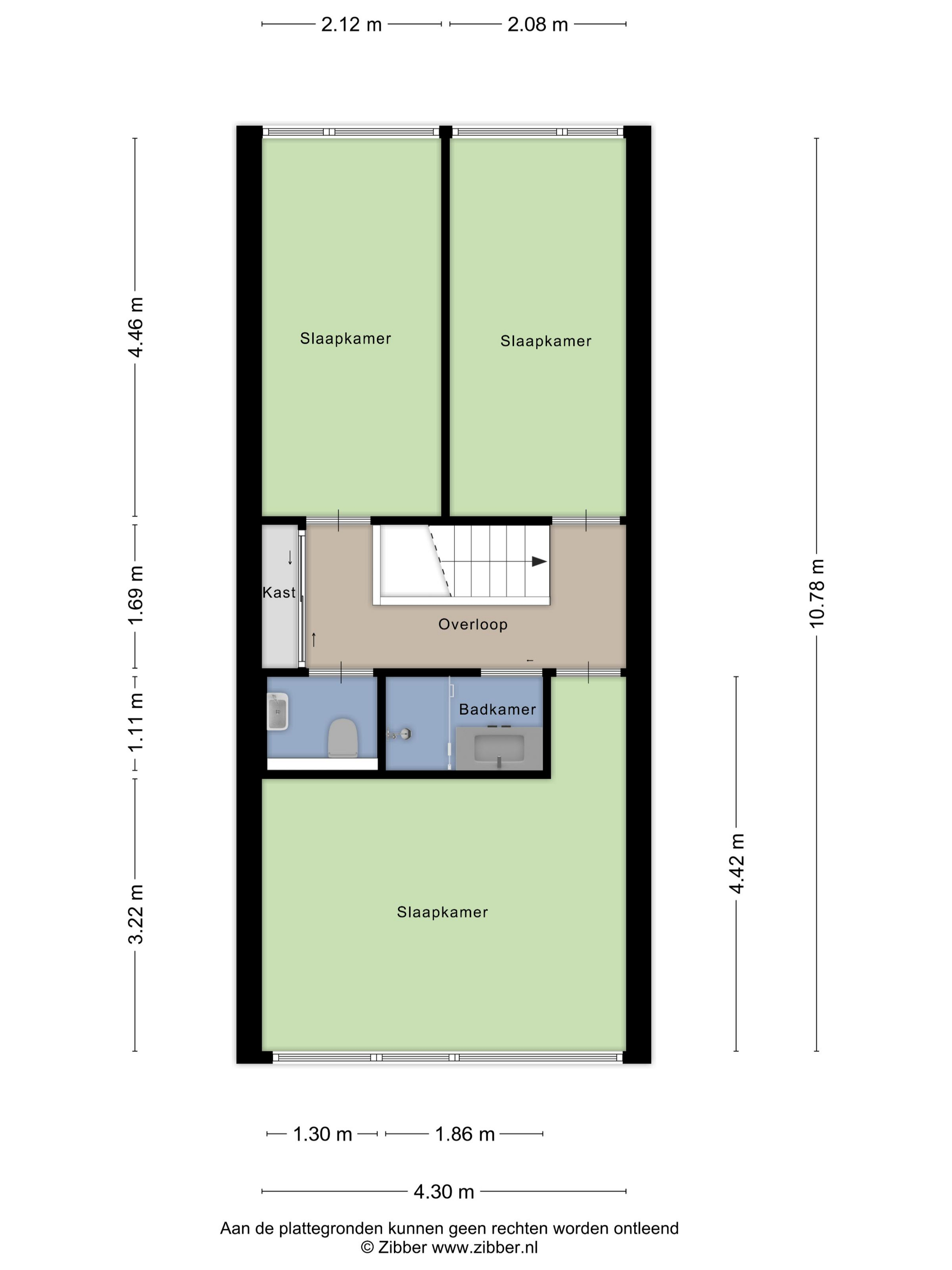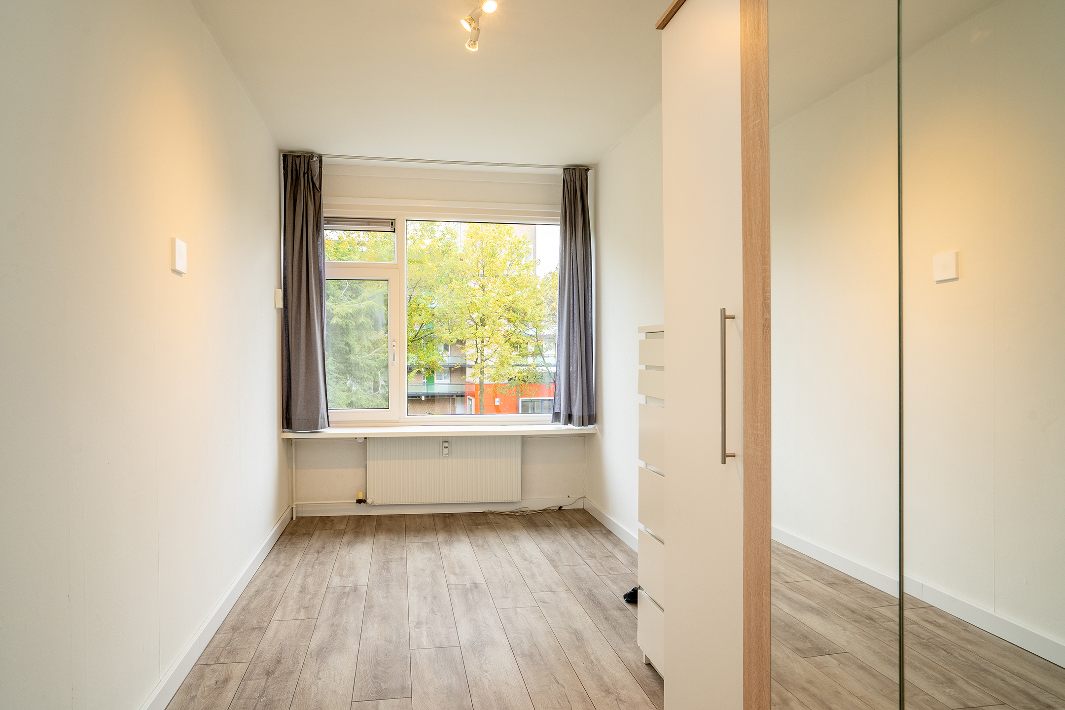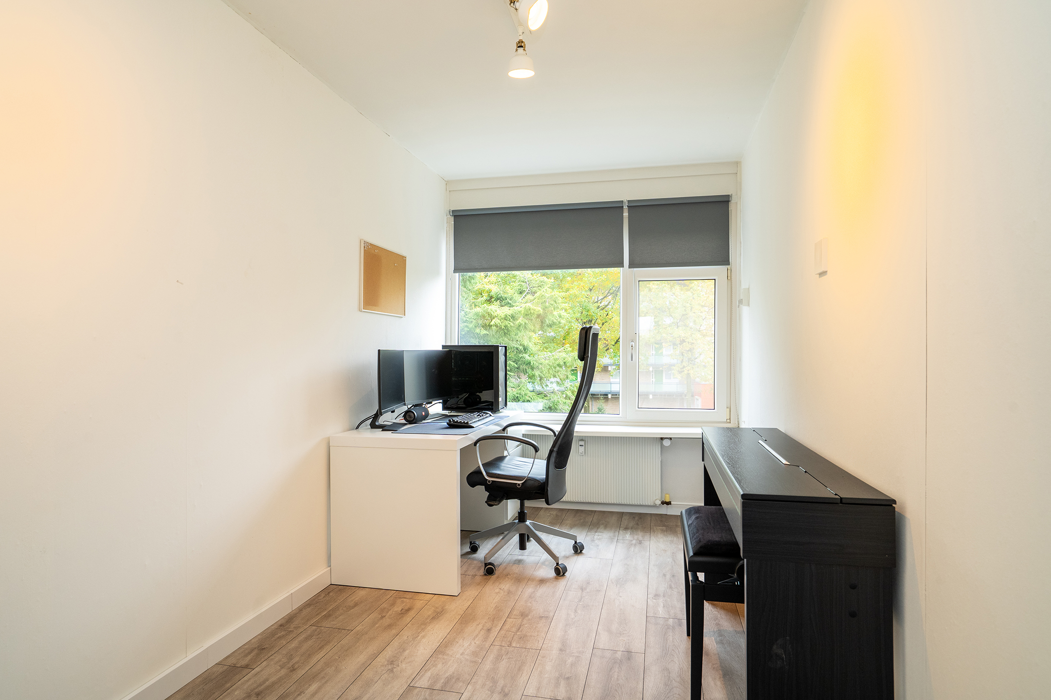 Tweede verdieping: De tweede verdieping telt drie slaapkamers van een goed formaat. De overloop verbindt alle vertrekken en biedt ruimte voor een kast of werkplek. De badkamer is praktisch ingedeeld met een douche en een wastafel. Naast de badkamer zit een separaat toilet. De slaapkamers zijn netjes afgewerkt en dankzij de rechte gevels goed in te richten.