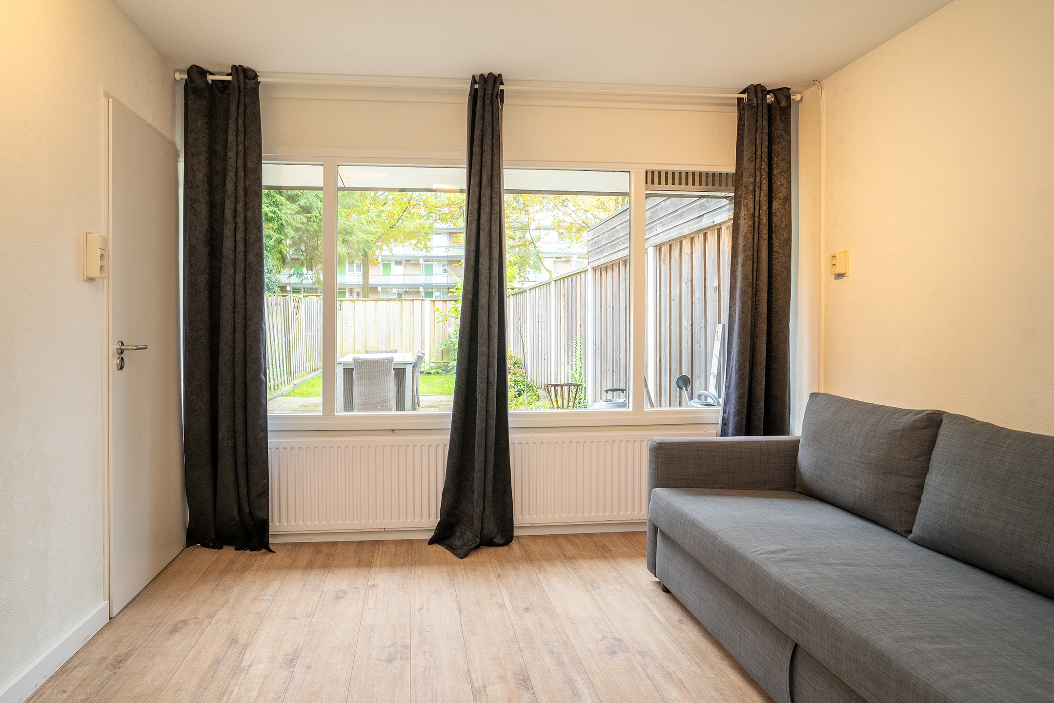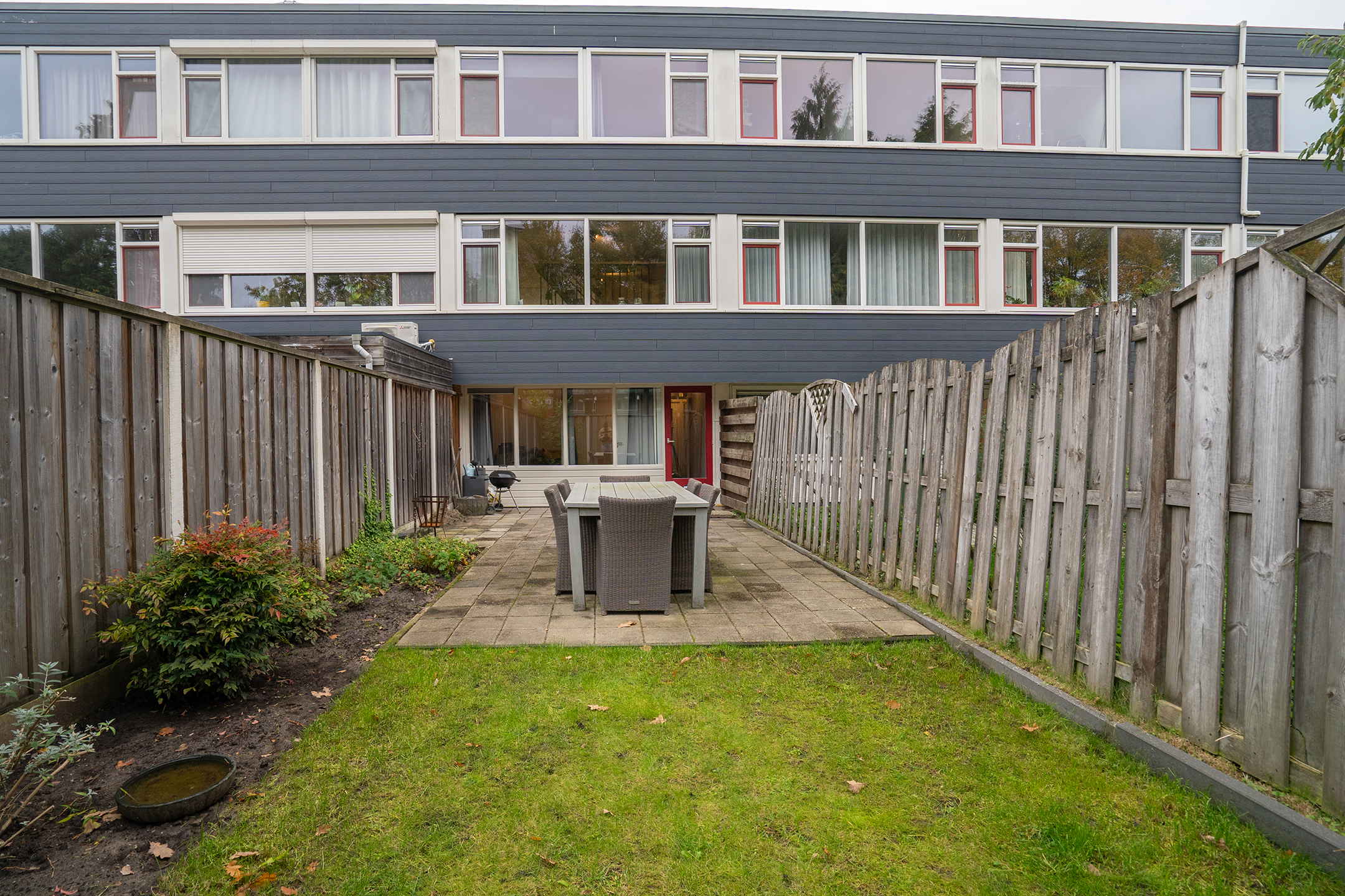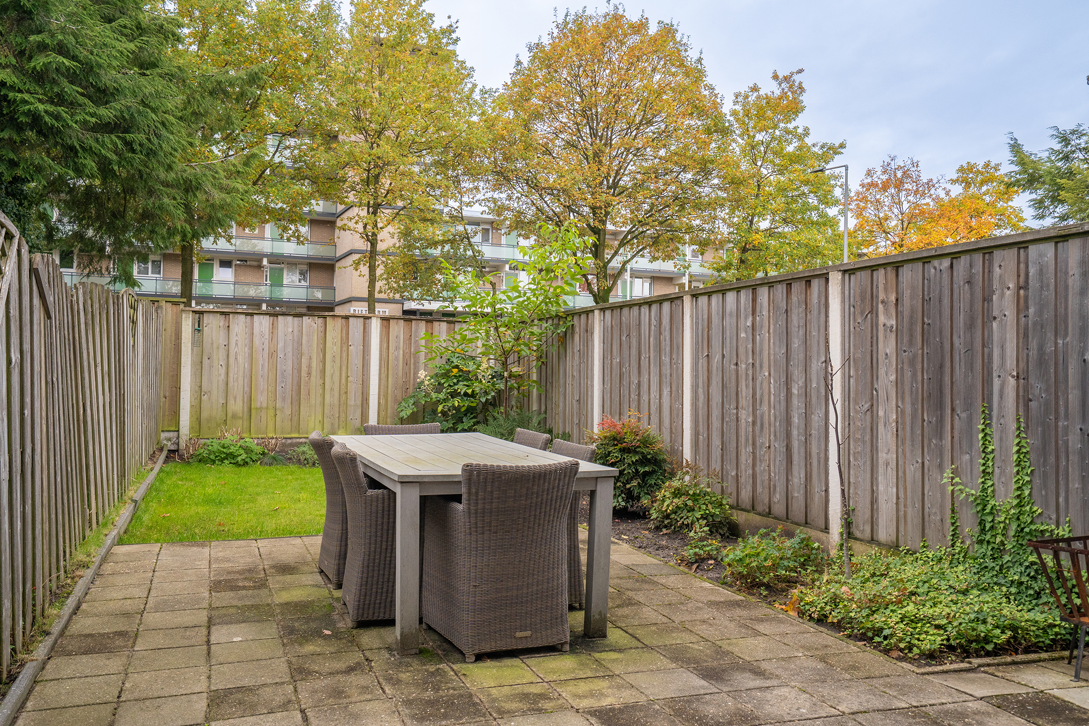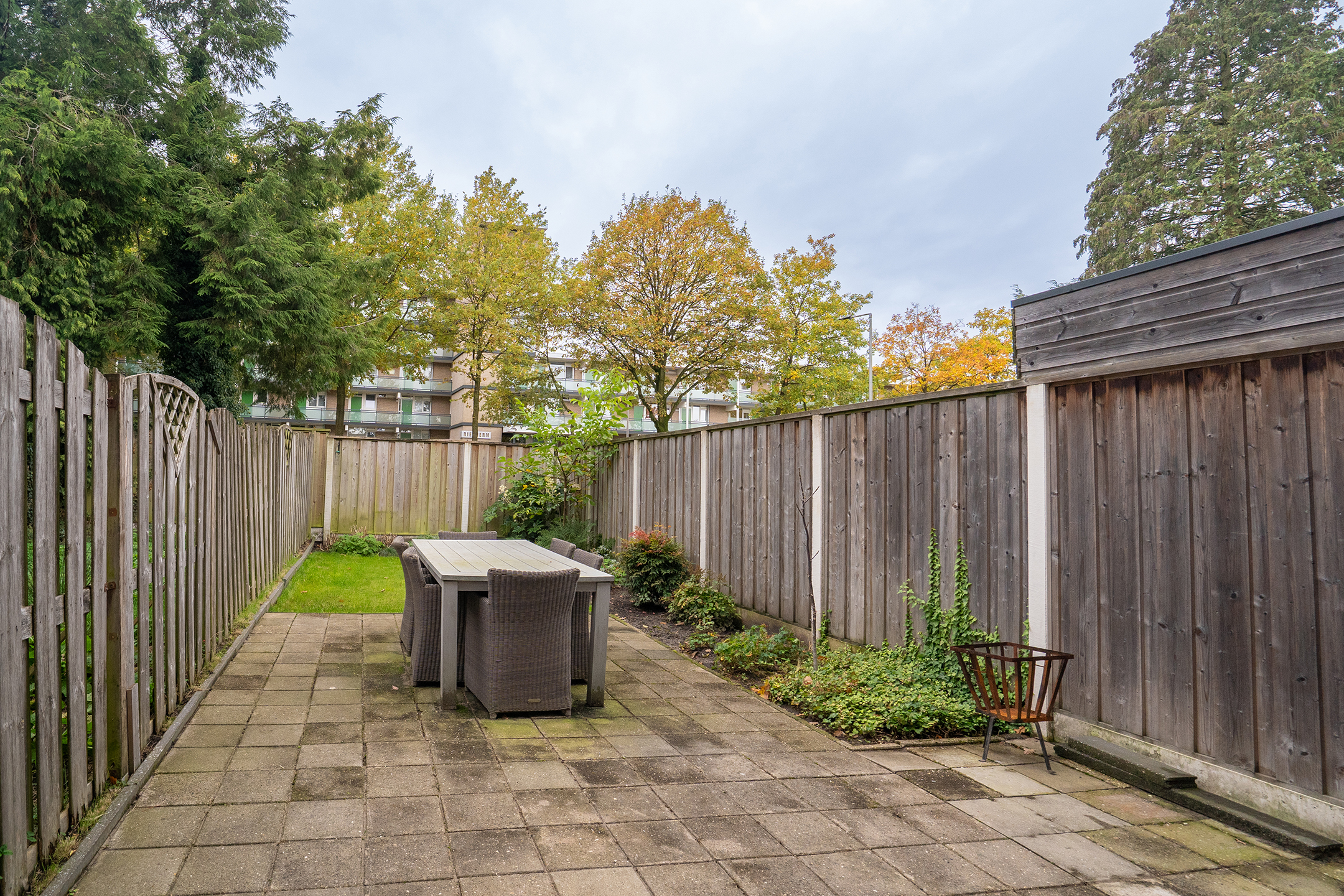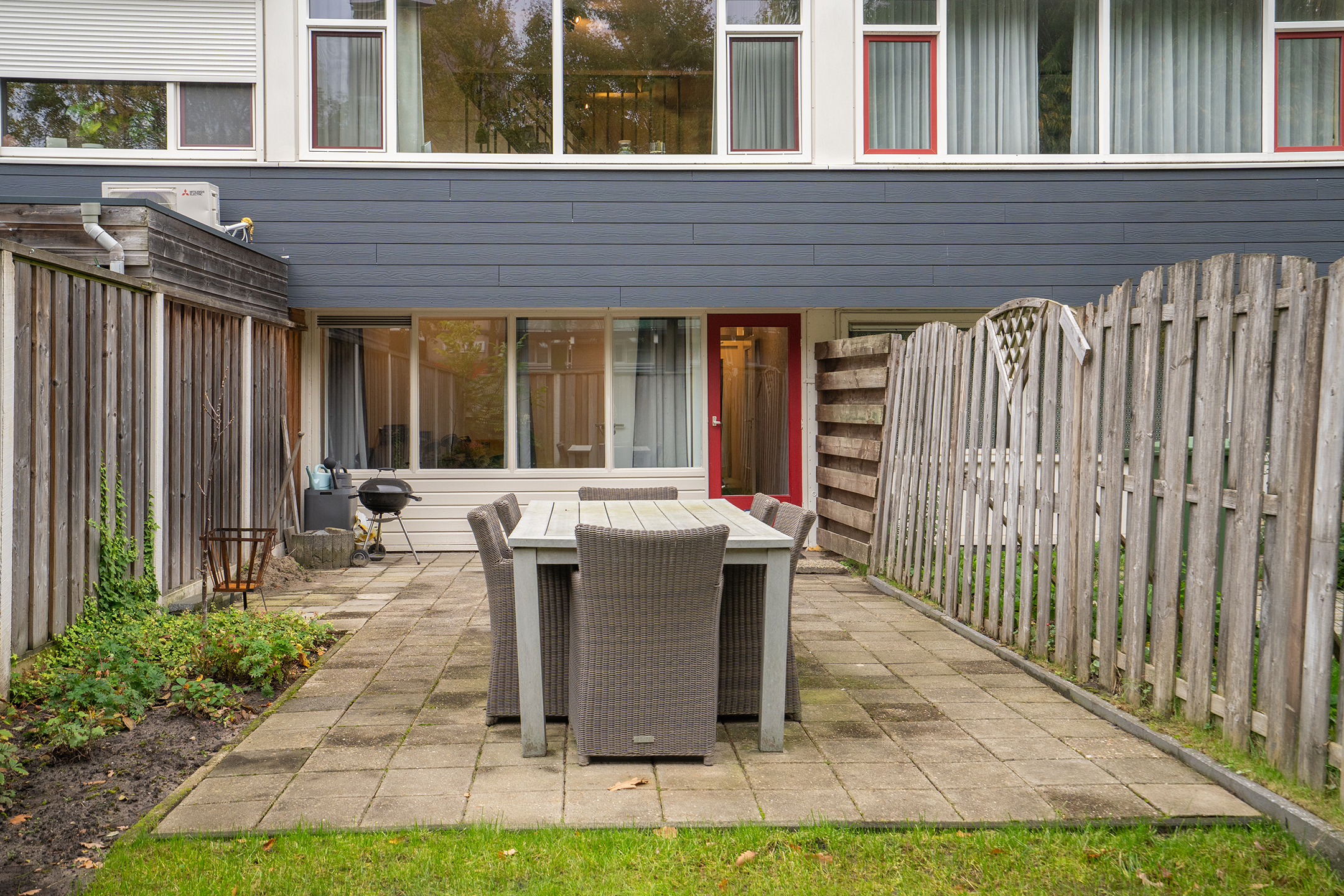Tuin: De diepe achtertuin is verzorgd aangelegd met een groot terras, bestrating en een groene border. Hier is alle ruimte om te ontspannen, te spelen of te genieten van lange zomerse avonden.