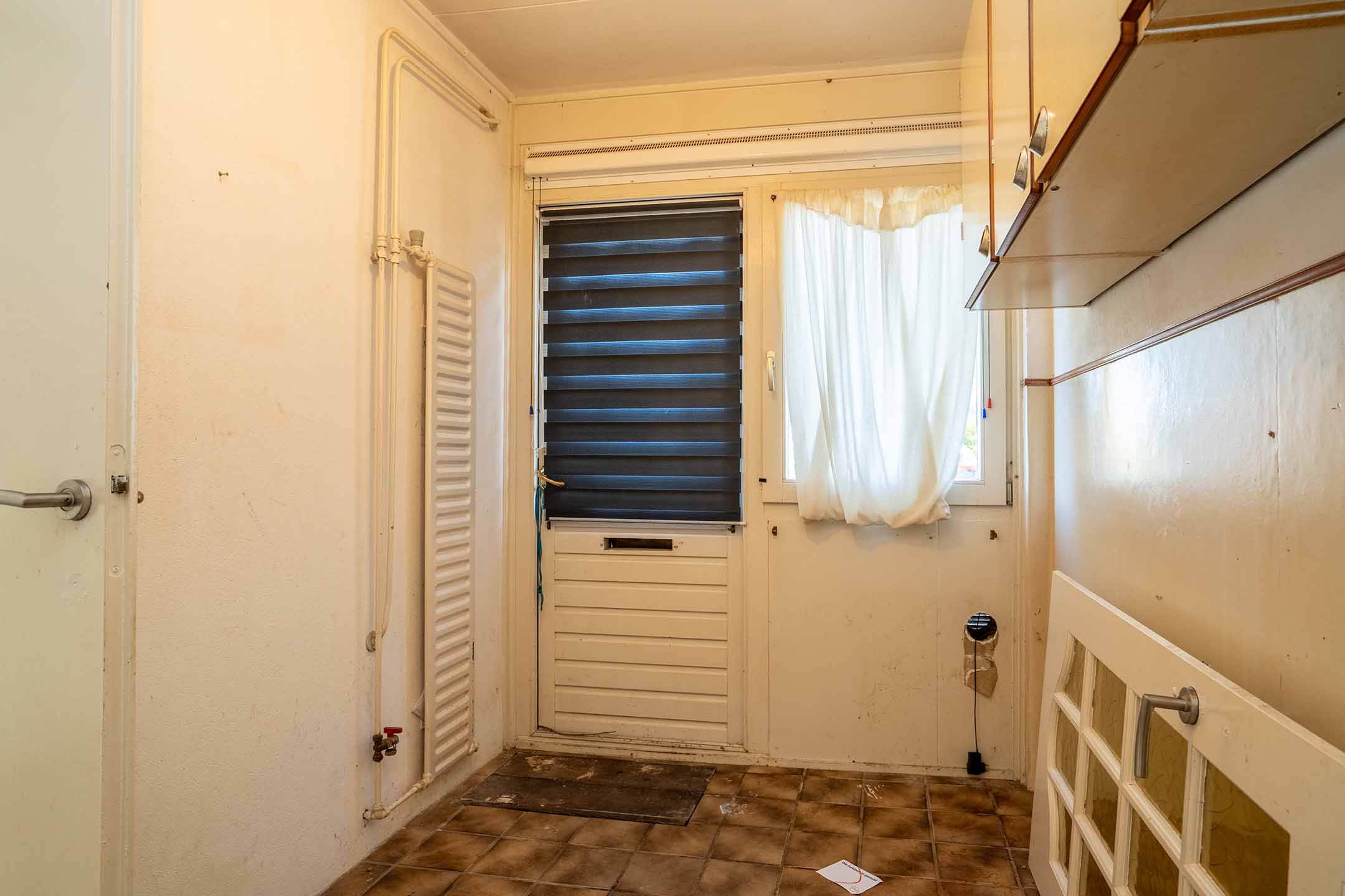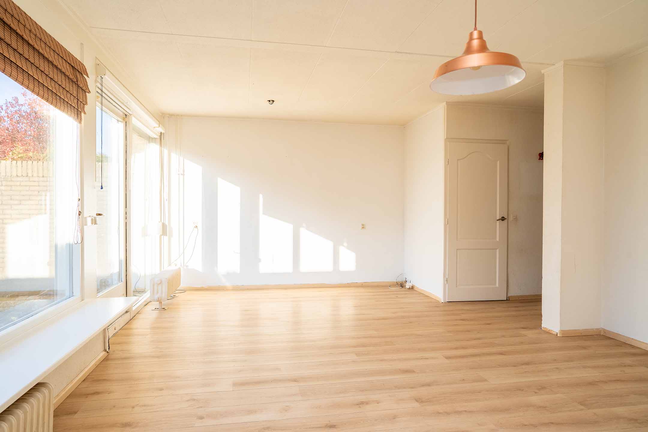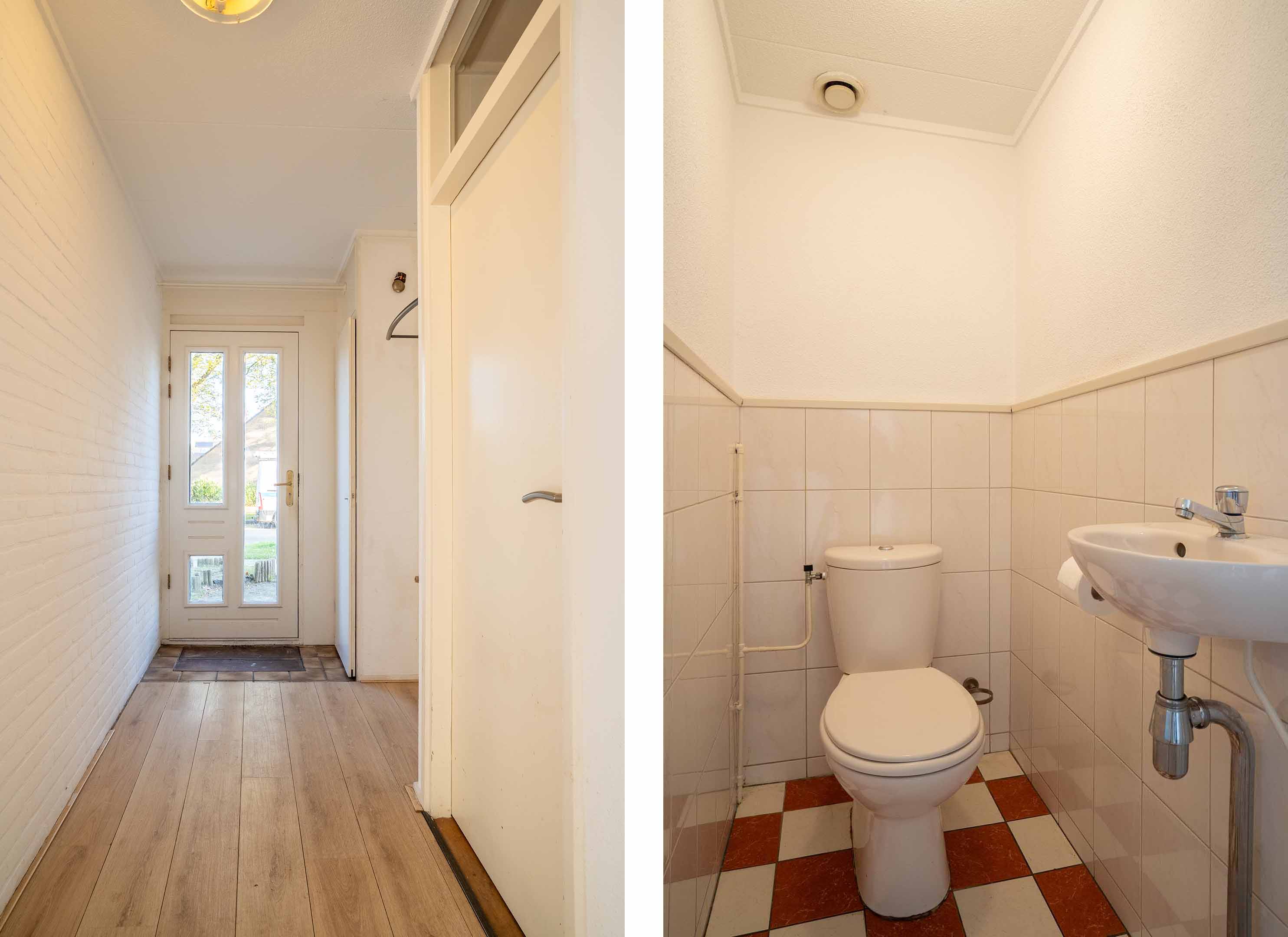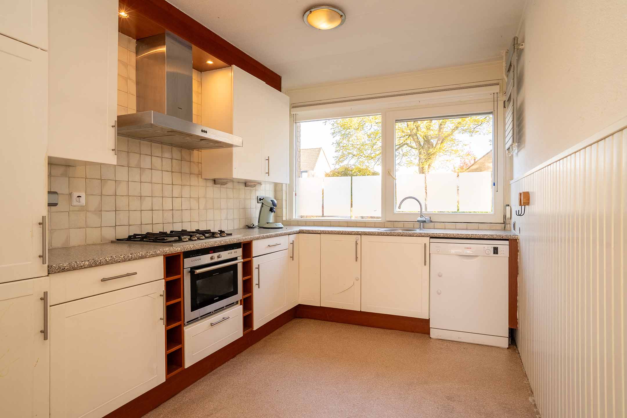 Begane grond: Via de voortuin bereik je de entree van de woning. De hal biedt toegang tot het toilet, een praktische berging met wasmachineaansluiting én toegang tot de keuken en woonkamer. Vanuit de hal loop je door naar de halfopen keuken aan de voorzijde. Deze keuken beschikt over een L-vormige opstelling met voldoende werkruimte. De tuingerichte woonkamer is royaal van formaat en heerlijk licht dankzij de brede raampartijen aan de achterzijde. Hier heb je alle ruimte voor een comfortabele zit- en eethoek. Via de achterdeur bereik je de zonnige op het westen gelegen achtertuin met achterom en vrijstaande garage.