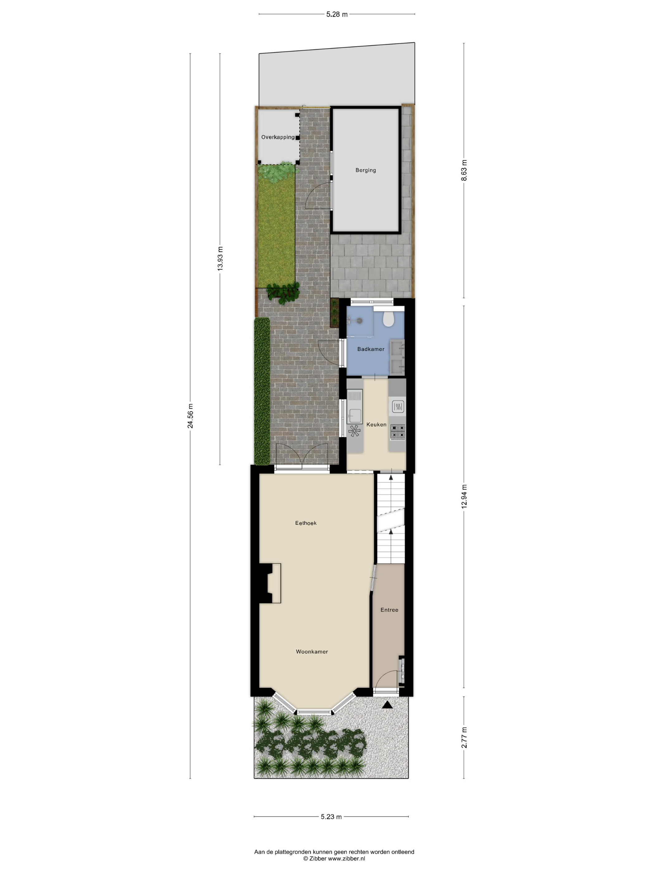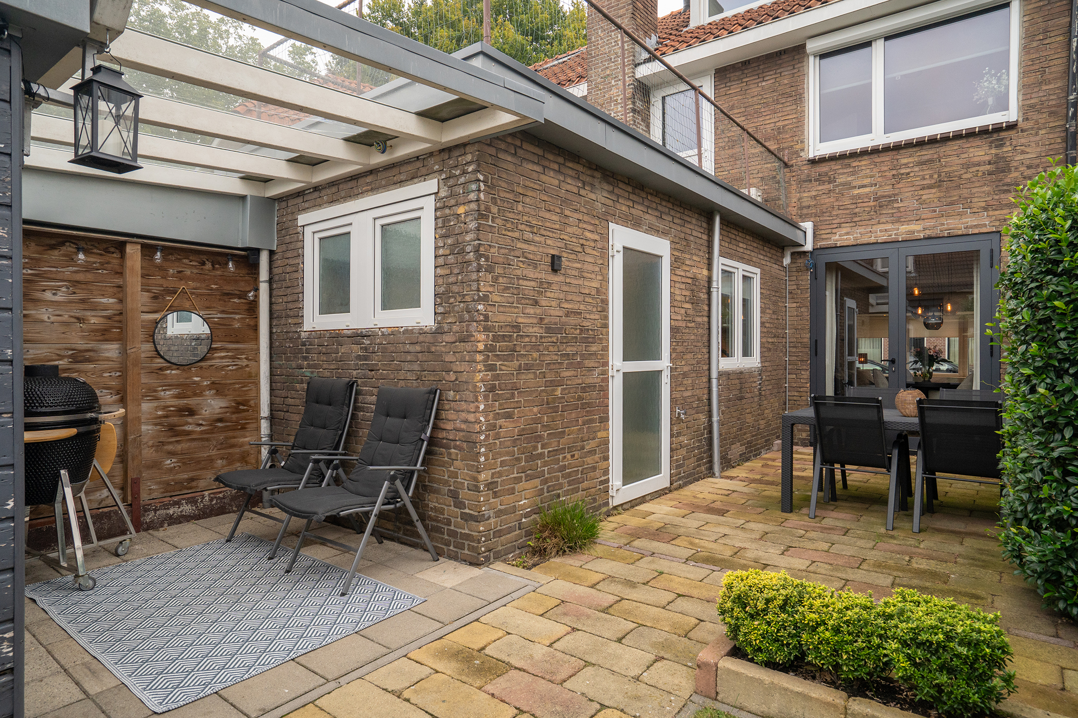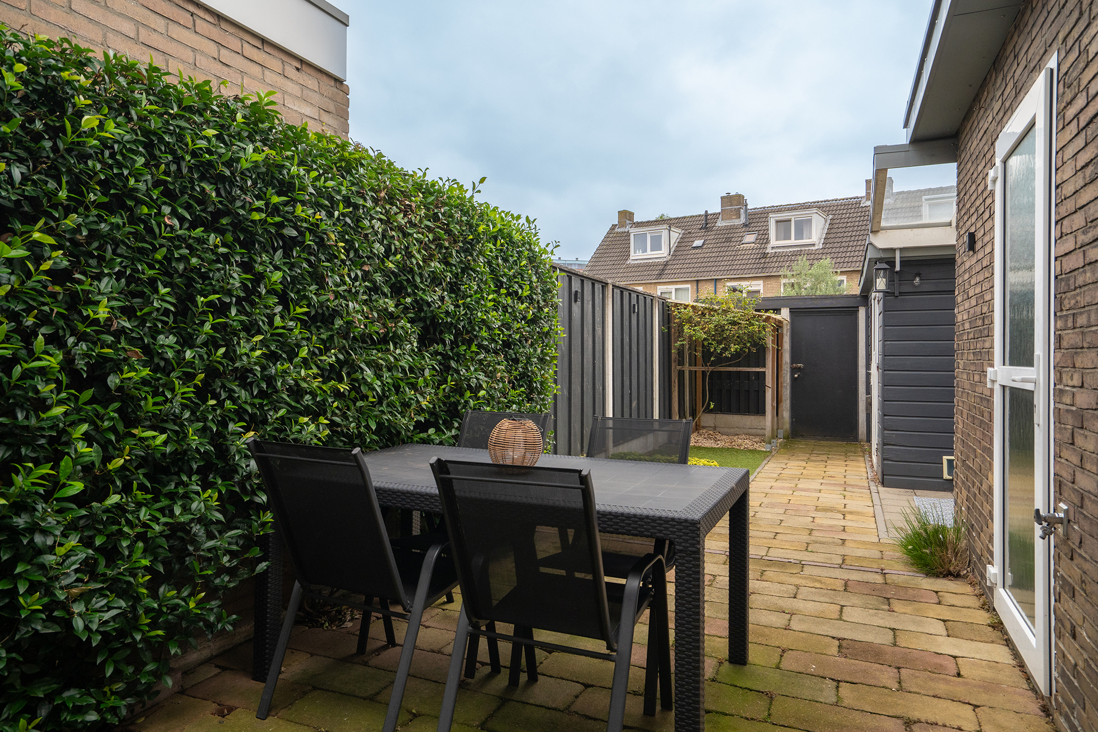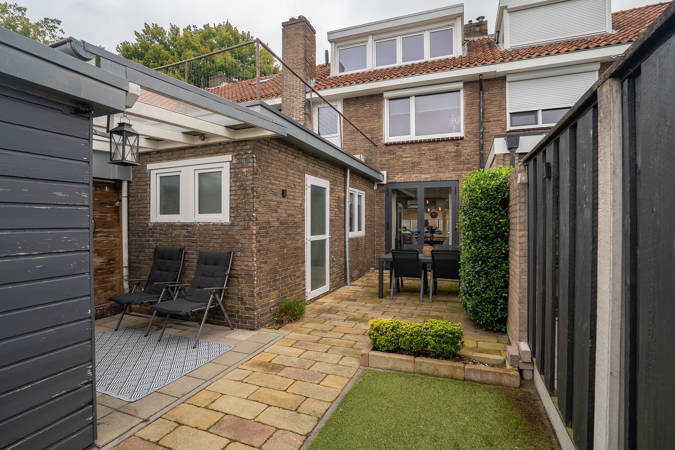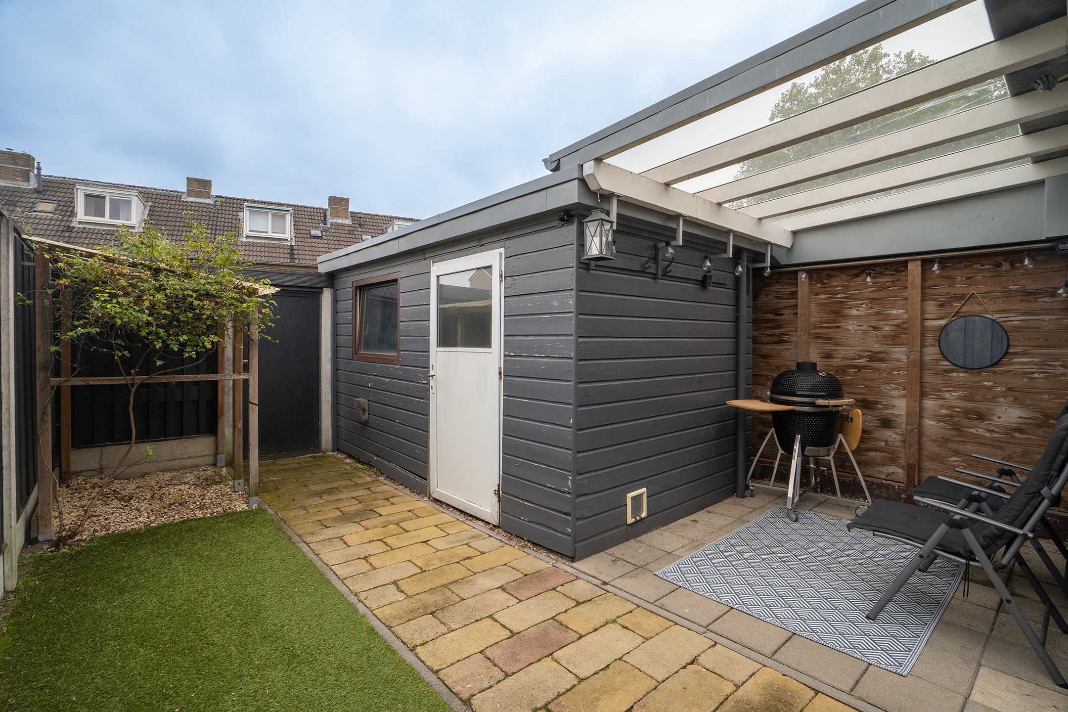 - Zonnige achtertuin met berging en overkapping.