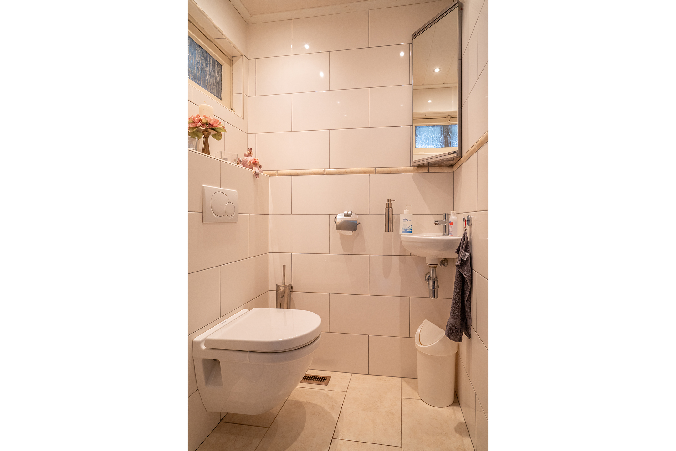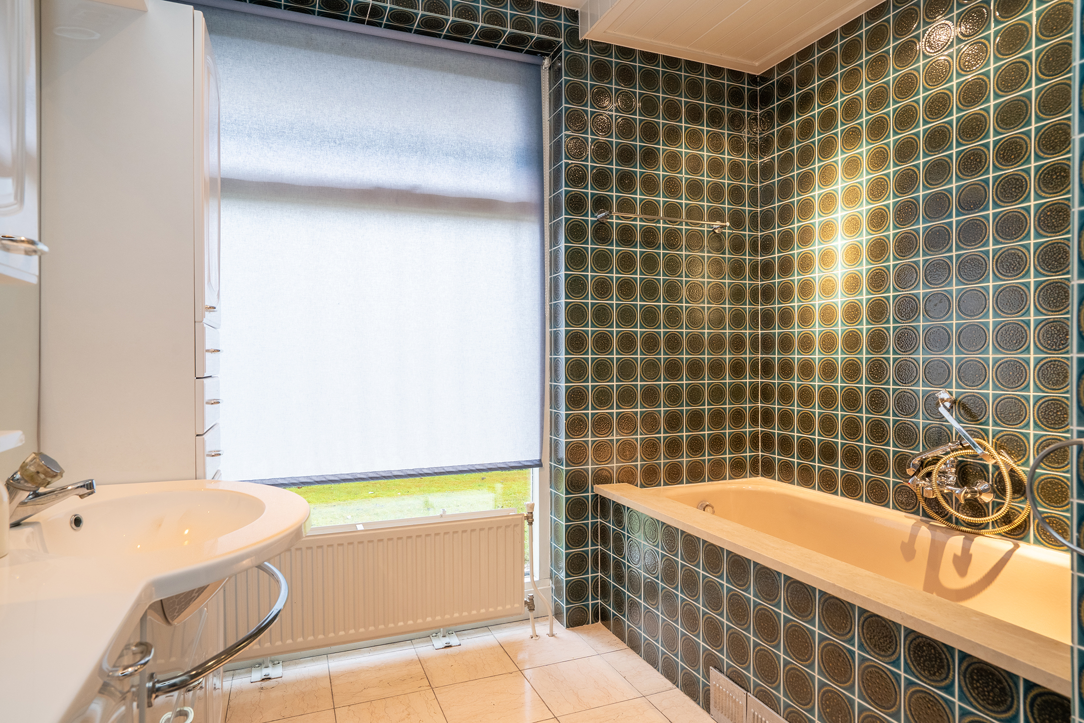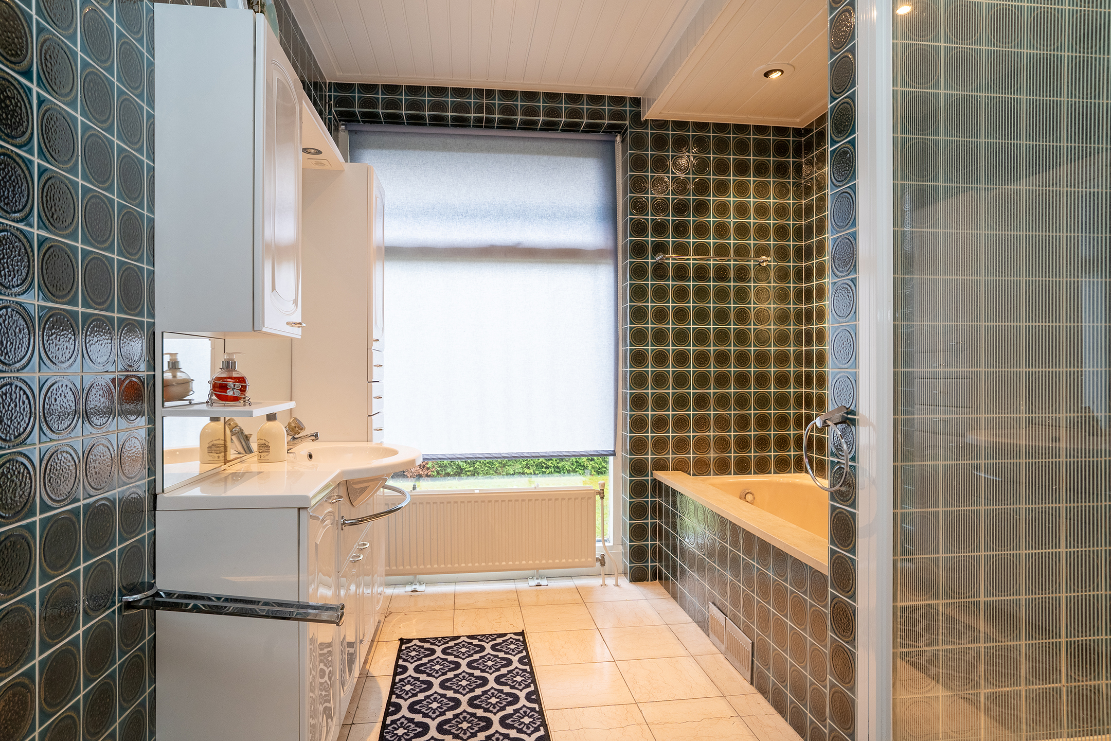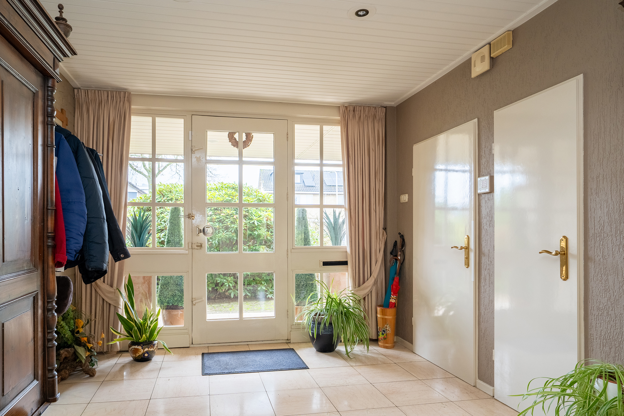Aan de linkerzijde van de woning bevindt zich de slaapvleugel: rustig, privé en bijzonder comfortabel. De lange gang met grote ramen leidt langs twee slaapkamers, een nette badkamer en een praktische bijkeuken met zij-entree en wasruimte. De badkamers zijn goed onderhouden, maar zijn klaar om volledig naar eigen stijl te vernieuwen.